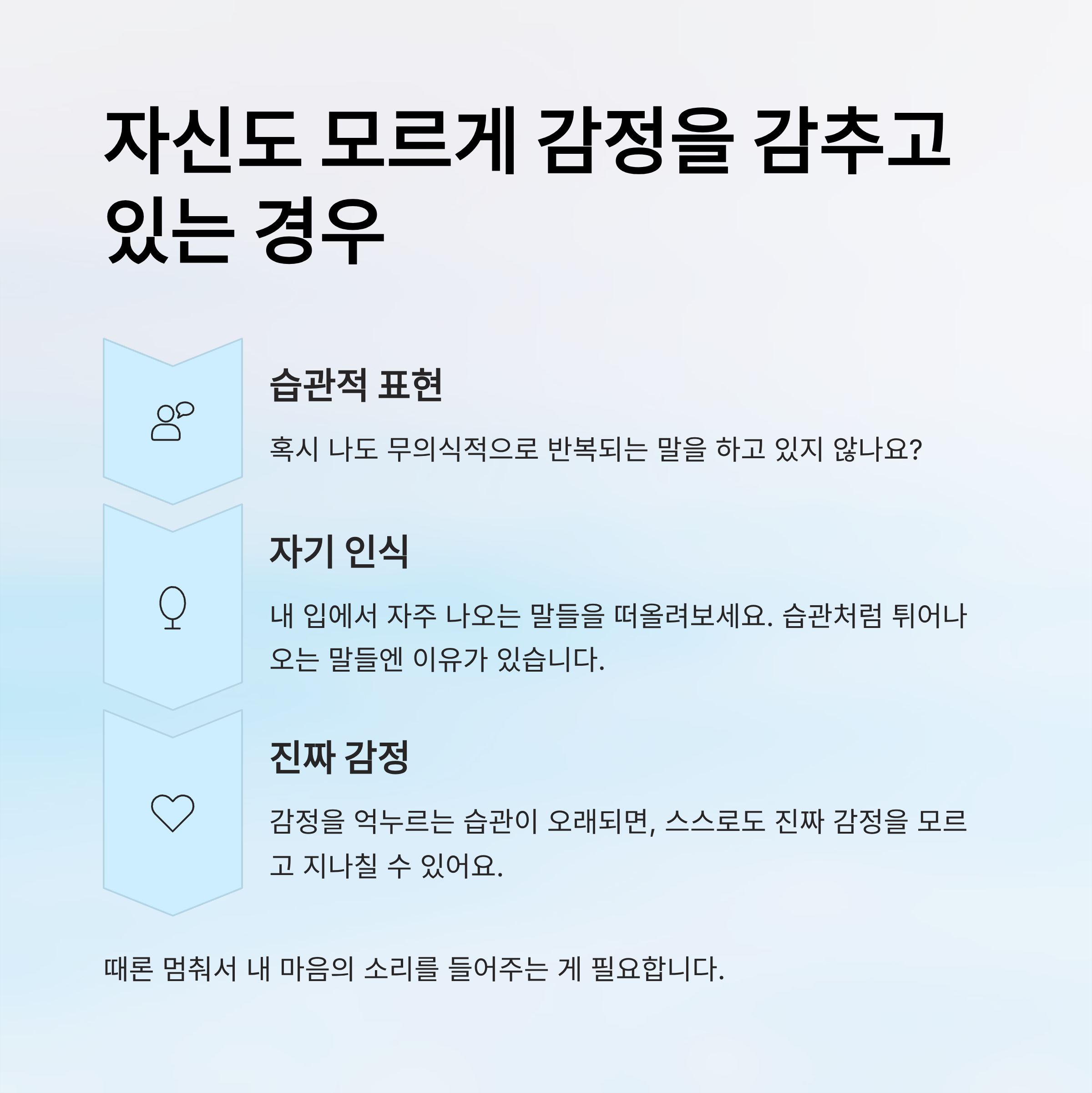 스스로도 진짜 감정을 모르고 지나칠 수 있어요.