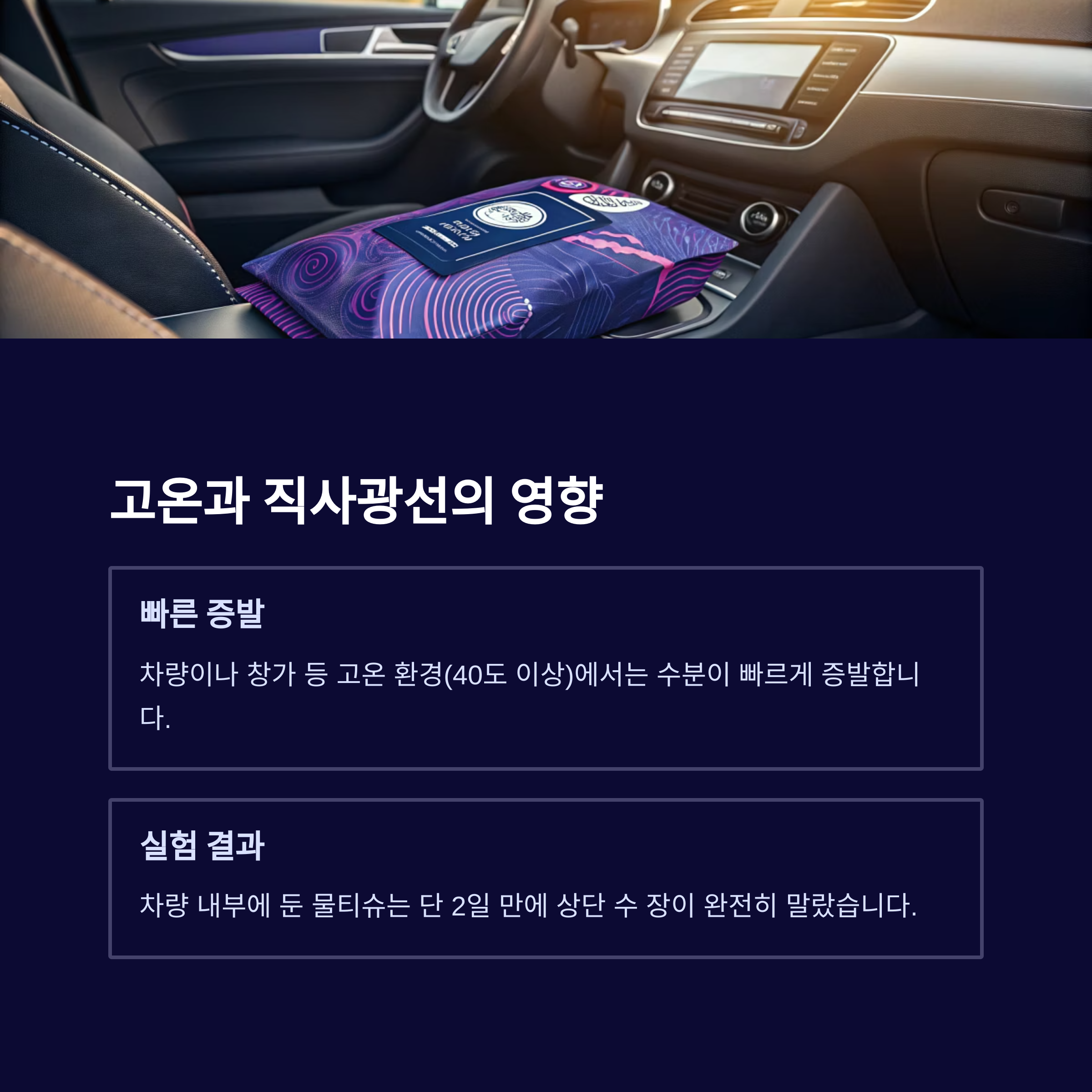 여름철 차량이나 창가 등 고온 환경에 물티슈를 두면