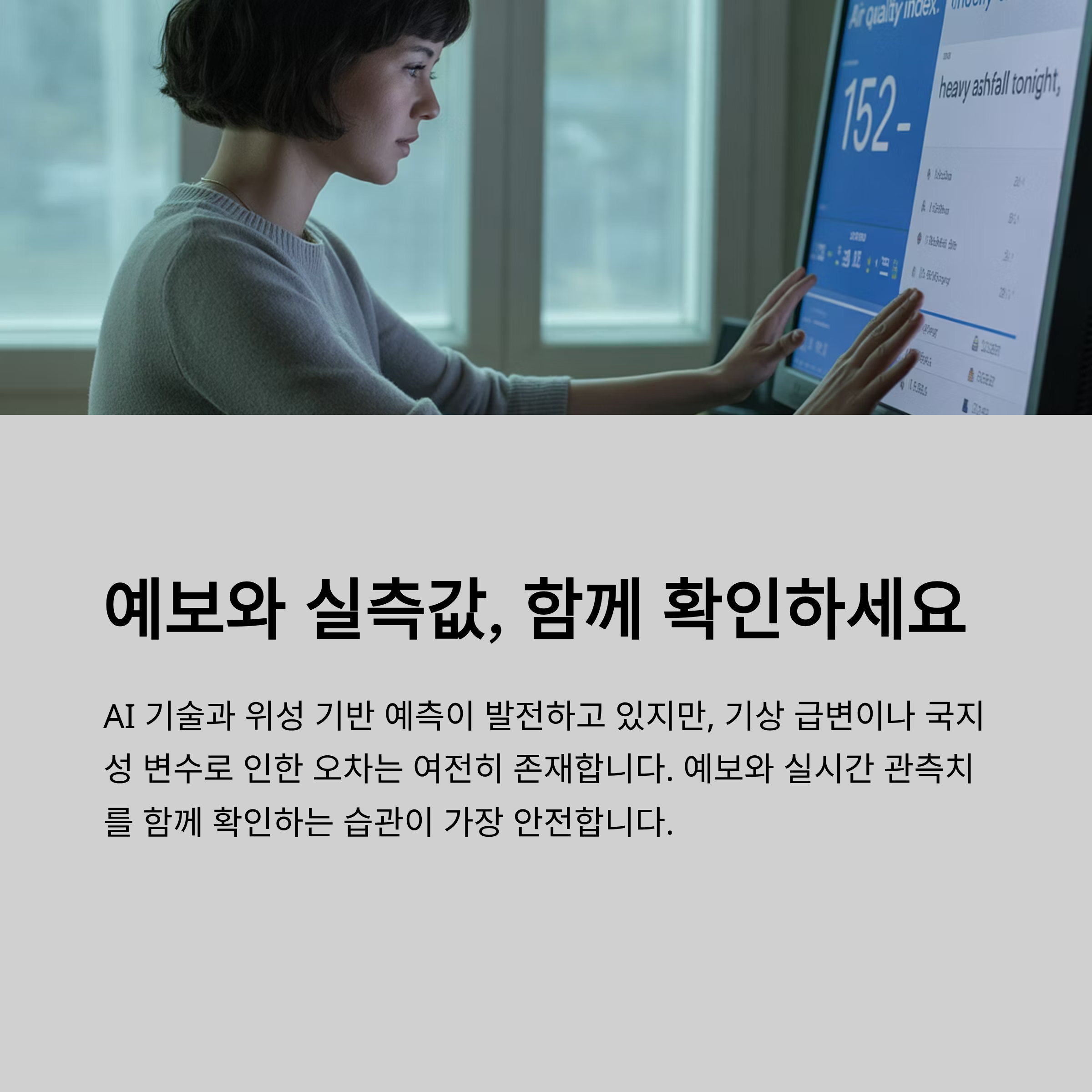 기상 급변이나 국지성 변수 때문에 예보와 실제 수치 간 오차는 여전히 존재합니다.
