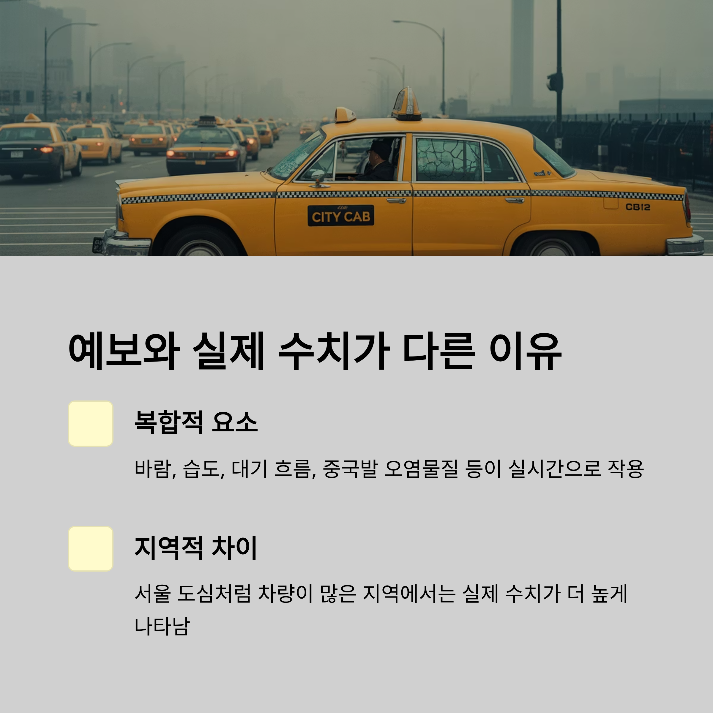 예보 수치와 이 기준을 함께 비교하면, 현재 공기질 상태를 더 명확히 파악할 수 있습니다.