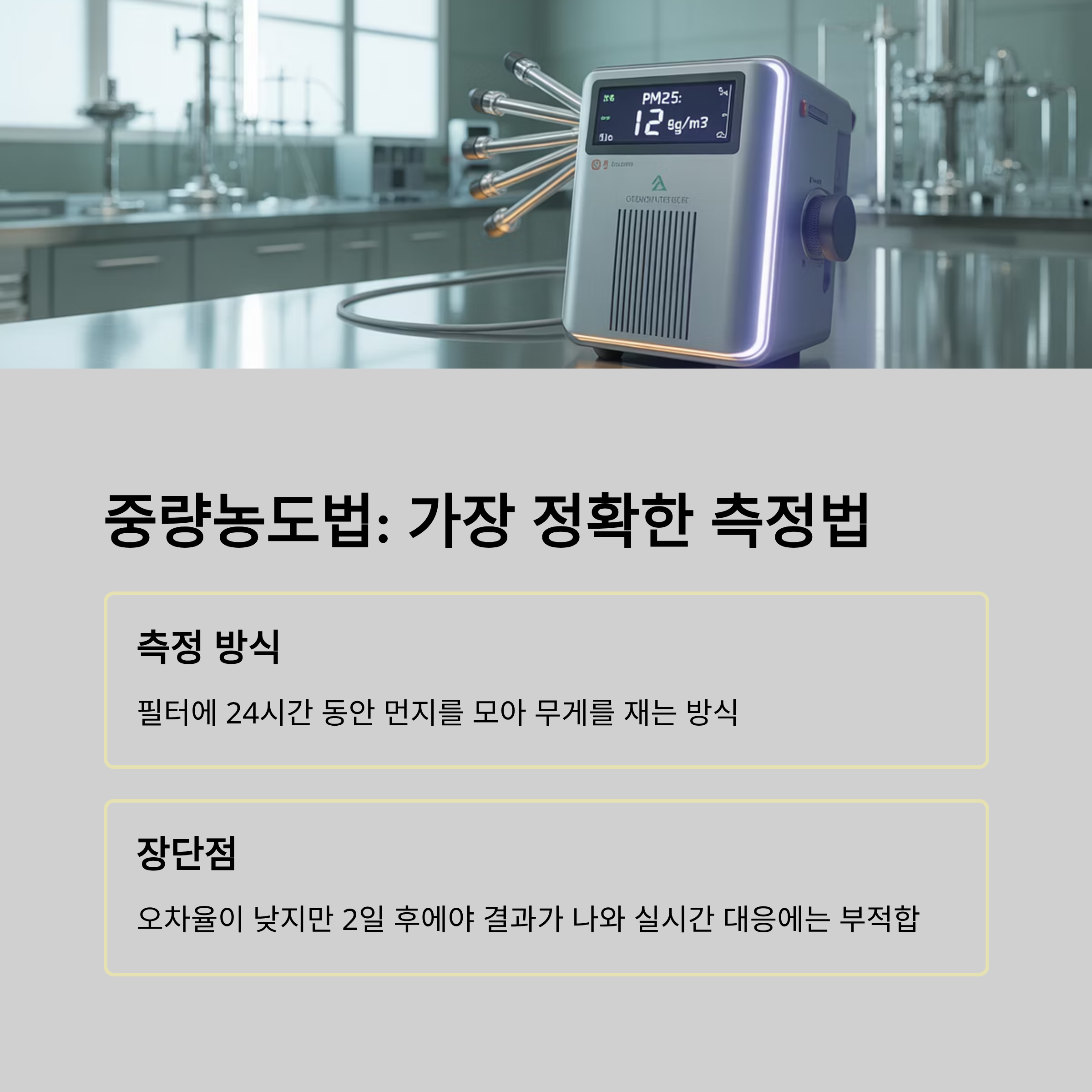 미세먼지 농도를 가장 정확히 재는 방법은 중량농도법입니다.
