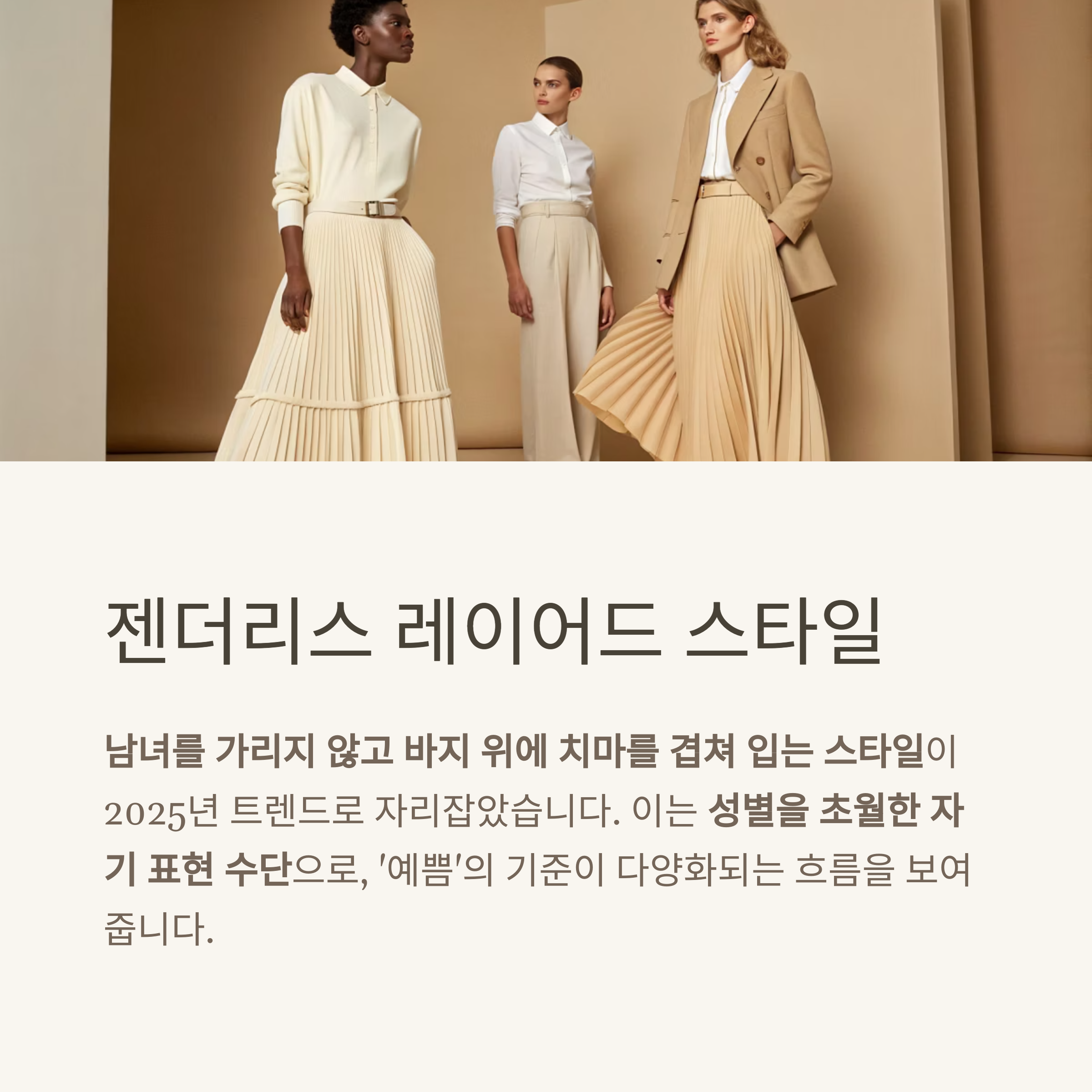 스커트 팬츠는 2025년 S/S 시즌 런웨이와 스트리트 패션 모두를 장악한 아이템입니다.