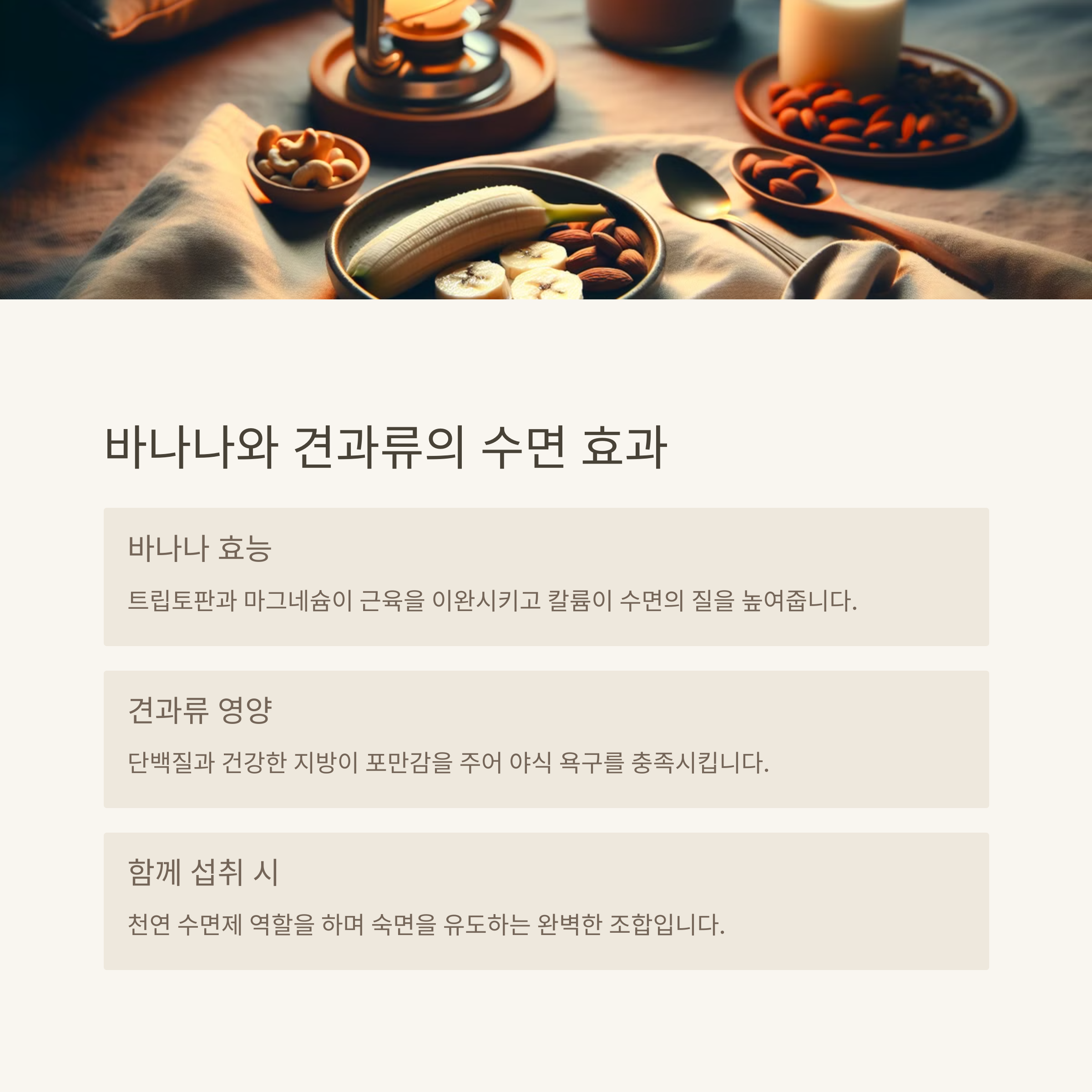 | 수면 보조 성분 | 멜라토닌, 트립토판 등을 함유한 식품 주목 |