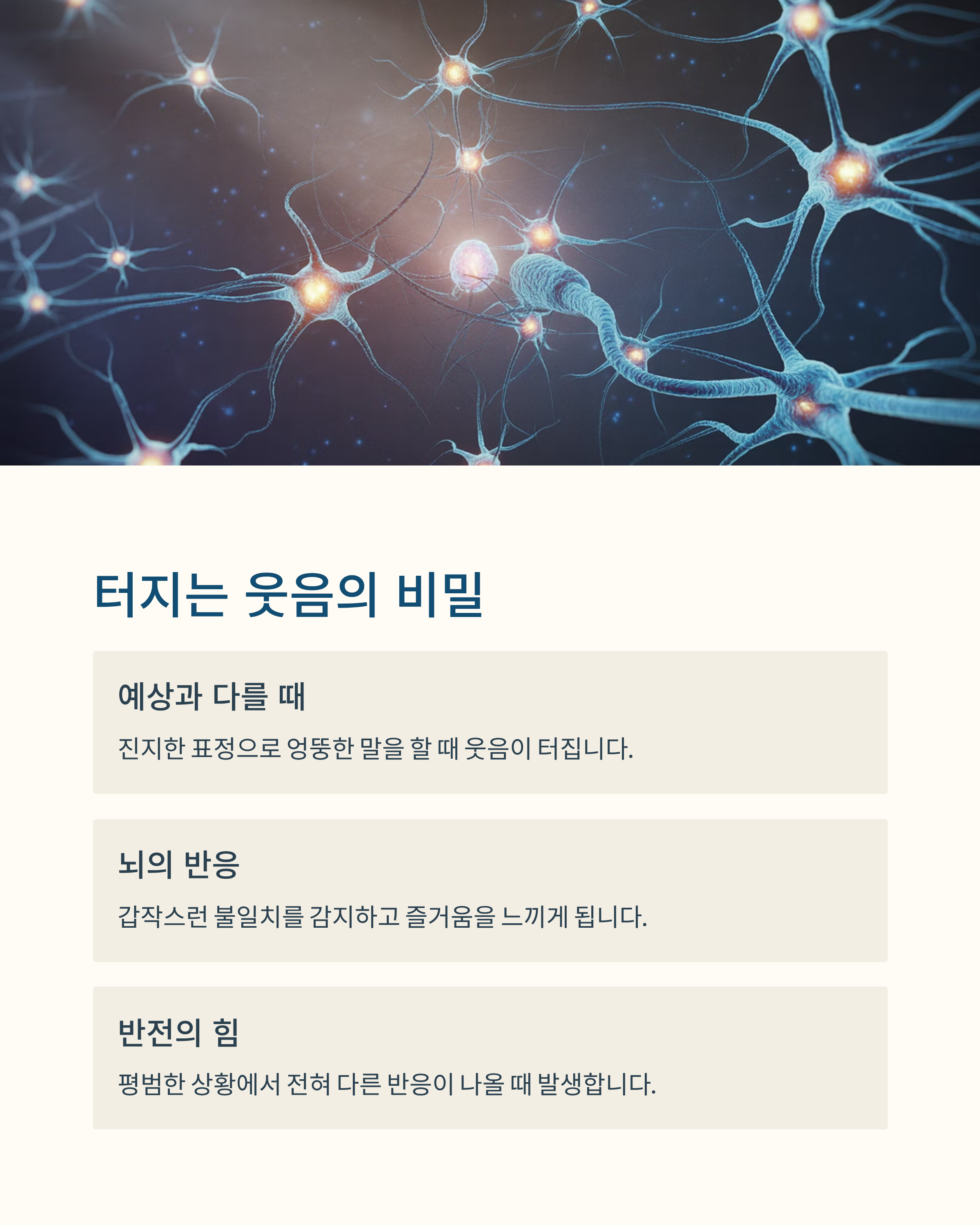 우리는 대부분 웃음을 '웃긴 것'에서 온다고 생각하지만, 실제로 많은 웃음은 예상과 다를 때, 즉 반전이 있을 때 발생합니다. 누군가 진지한 표정으로 엉뚱한 말을 한다거나, 평범한 상황에서 전혀 다른 반응이 나올 때, 뇌는 혼란과 동시에 빠르게 반응하면서 웃음을 유도합니다.