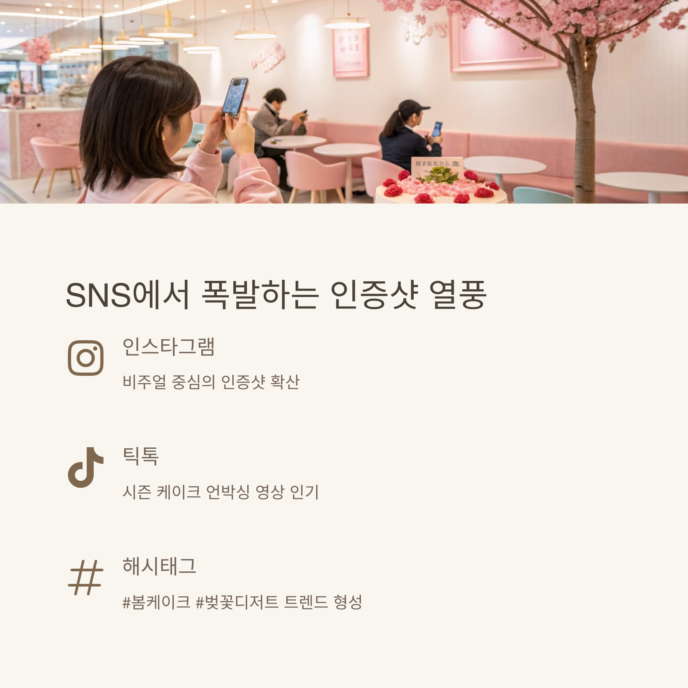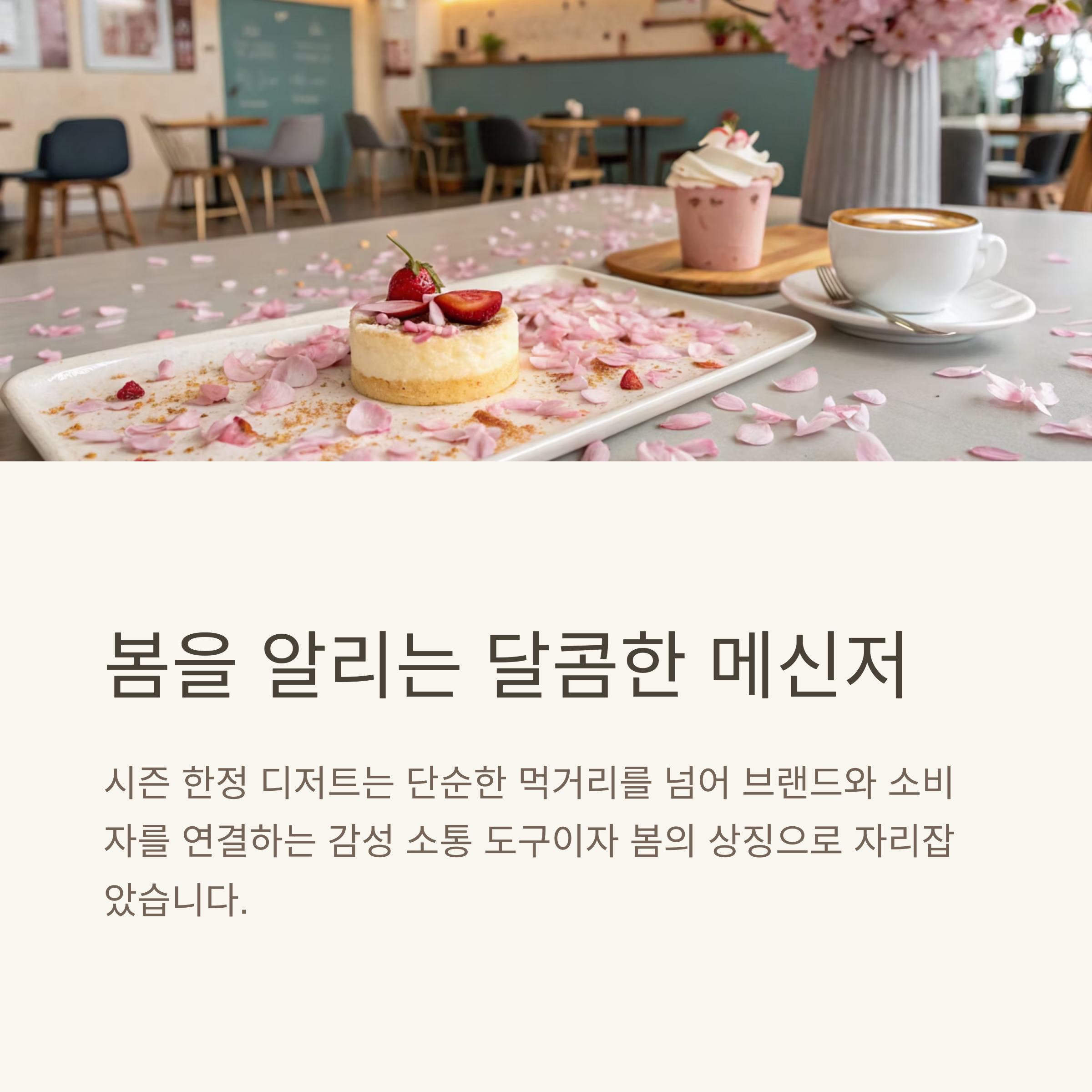| 투썸플레이스, 하겐다즈 등 사례 다수 | 벚꽃, 체리, 핑크 컬러 등 비주얼 요소 | 인스타그램, 블로그 중심 확산 |