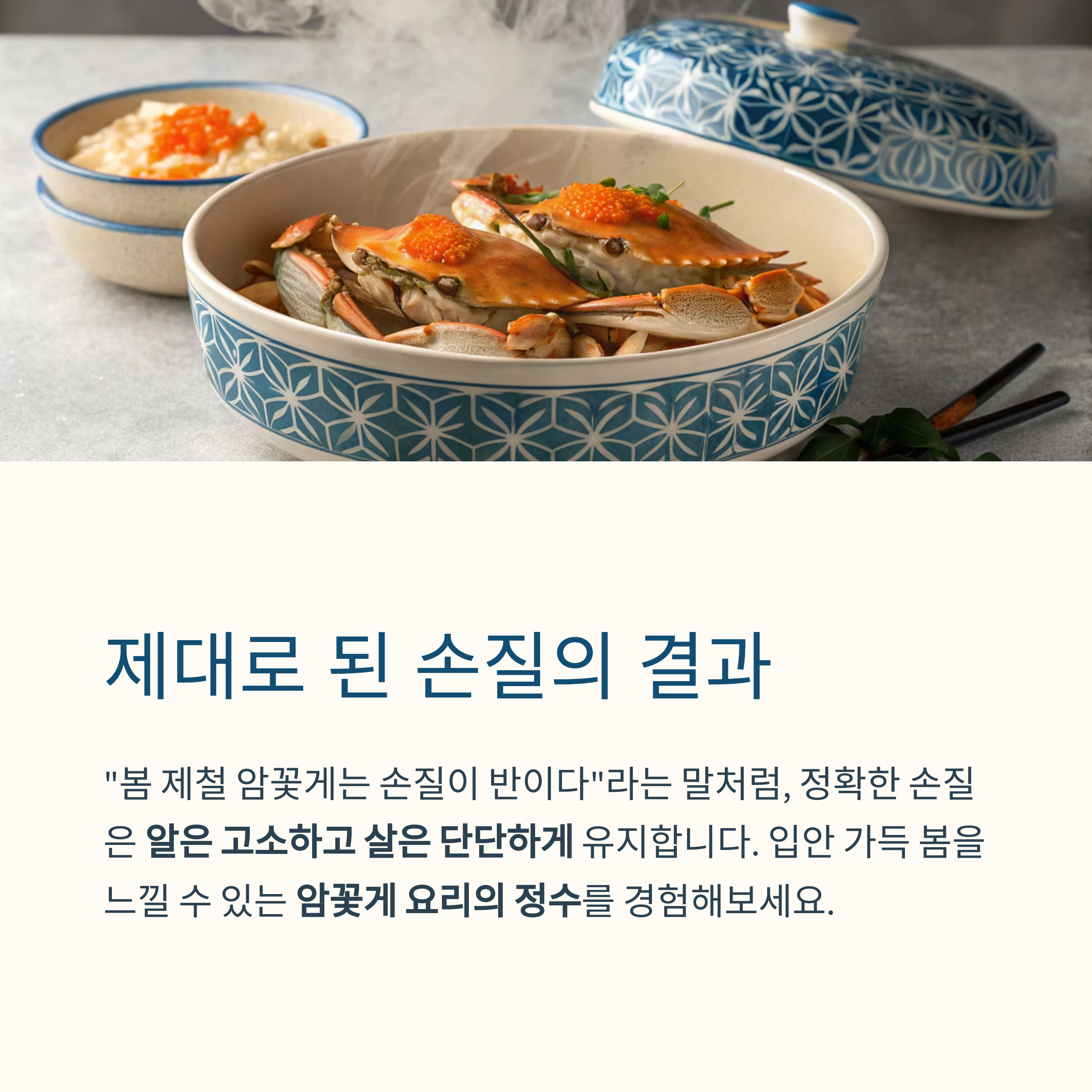 입안 가득 봄을 느낄 수 있는 암꽃게 요리의 정수를 위해,