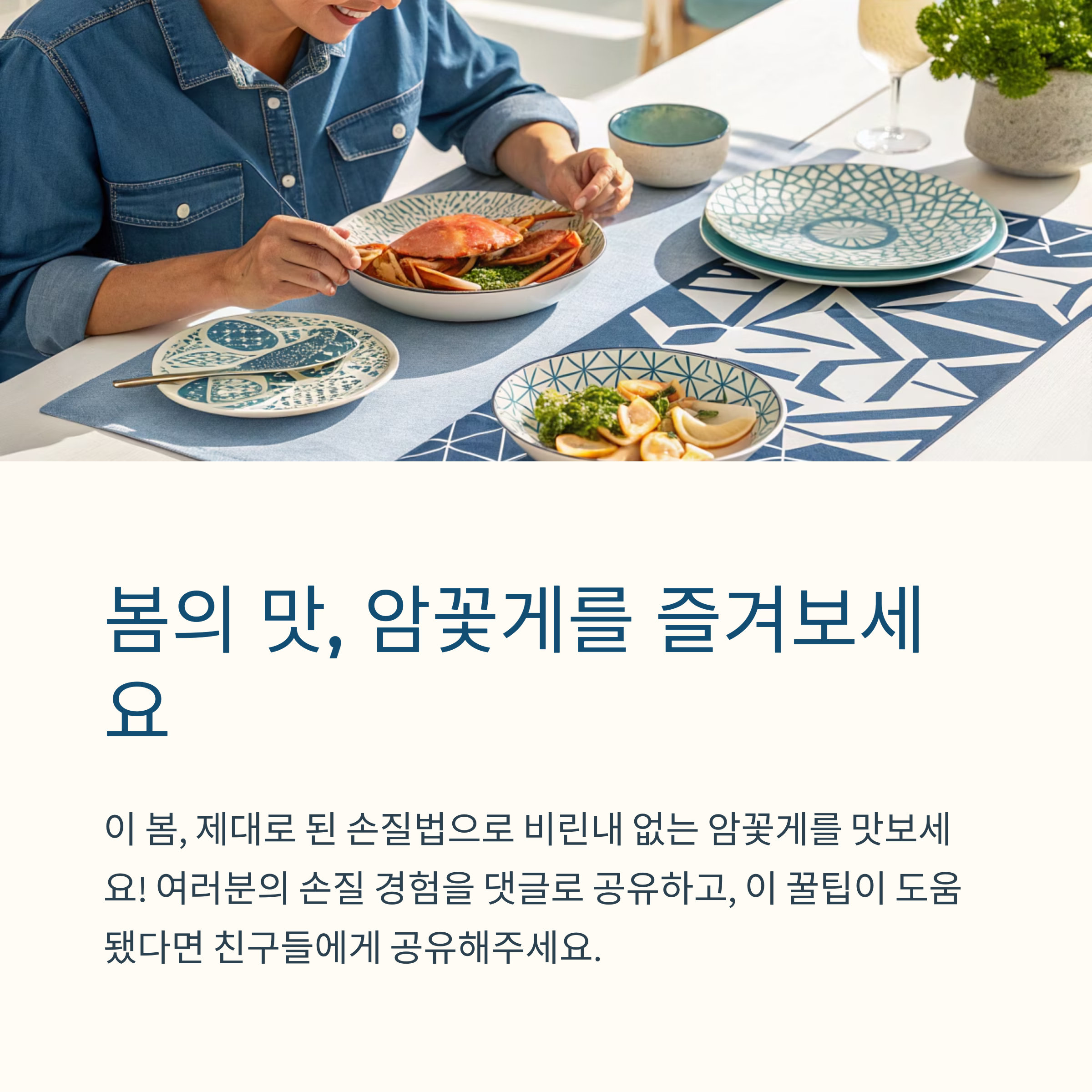 "봄 제철 암꽃게는 손질이 반이다"는 말처럼,