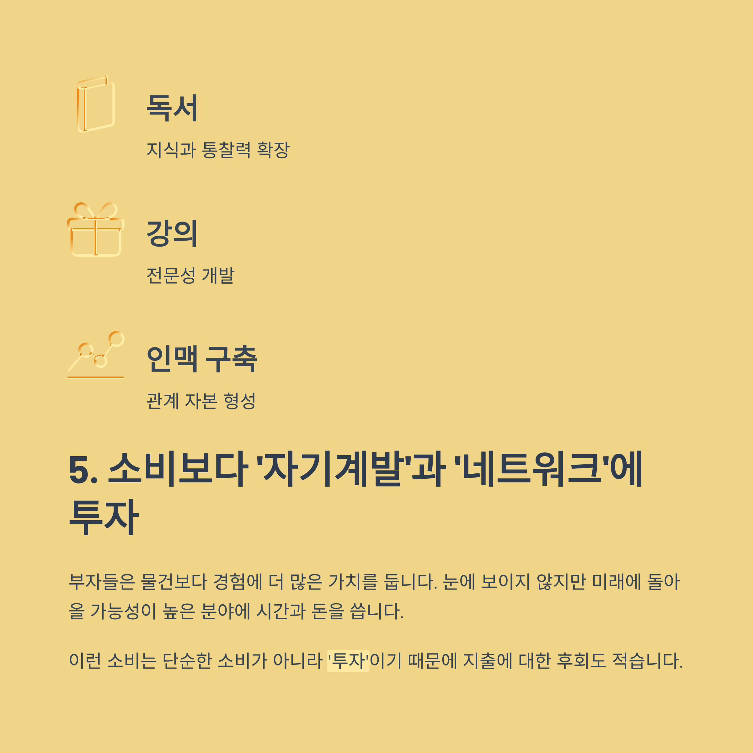 5. 소비보다 ‘자기계발’과 ‘네트워크’에 투자