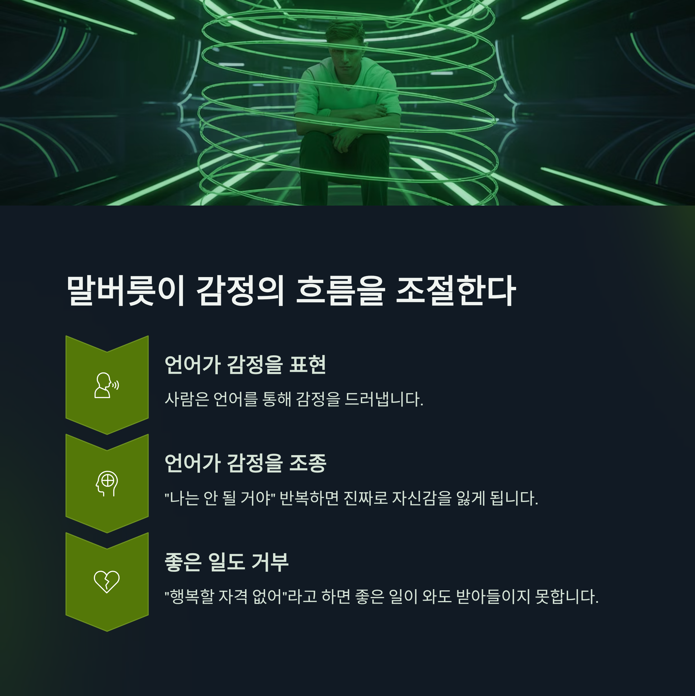 이런 말은 단순한 푸념이 아니라 스스로를 '불행한 사람'으로 규정하는 강력한 암시가 됩니다. 결과적으로 부정적인 사고방식이 굳어지고, 문제 해결보다 좌절에 익숙해지는 경향이 강해집니다.