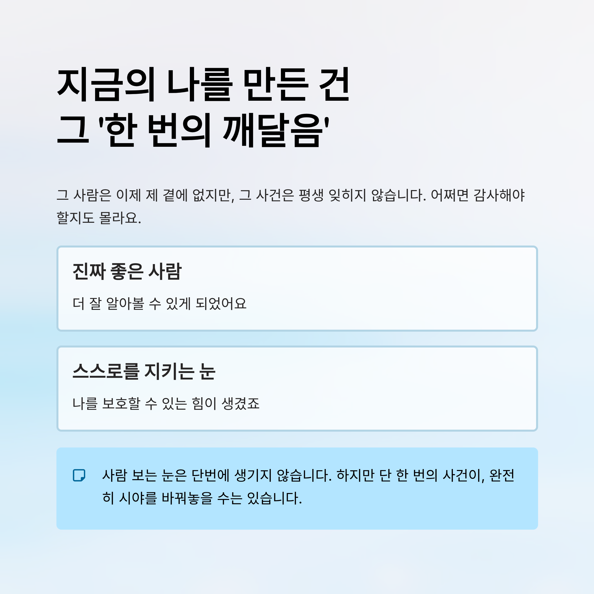 그 덕분에 저는 진짜 좋은 사람을 더 잘 알아볼 수 있게 되었고, 스스로를 지킬 수 있는 눈도 생겼으니까요.
