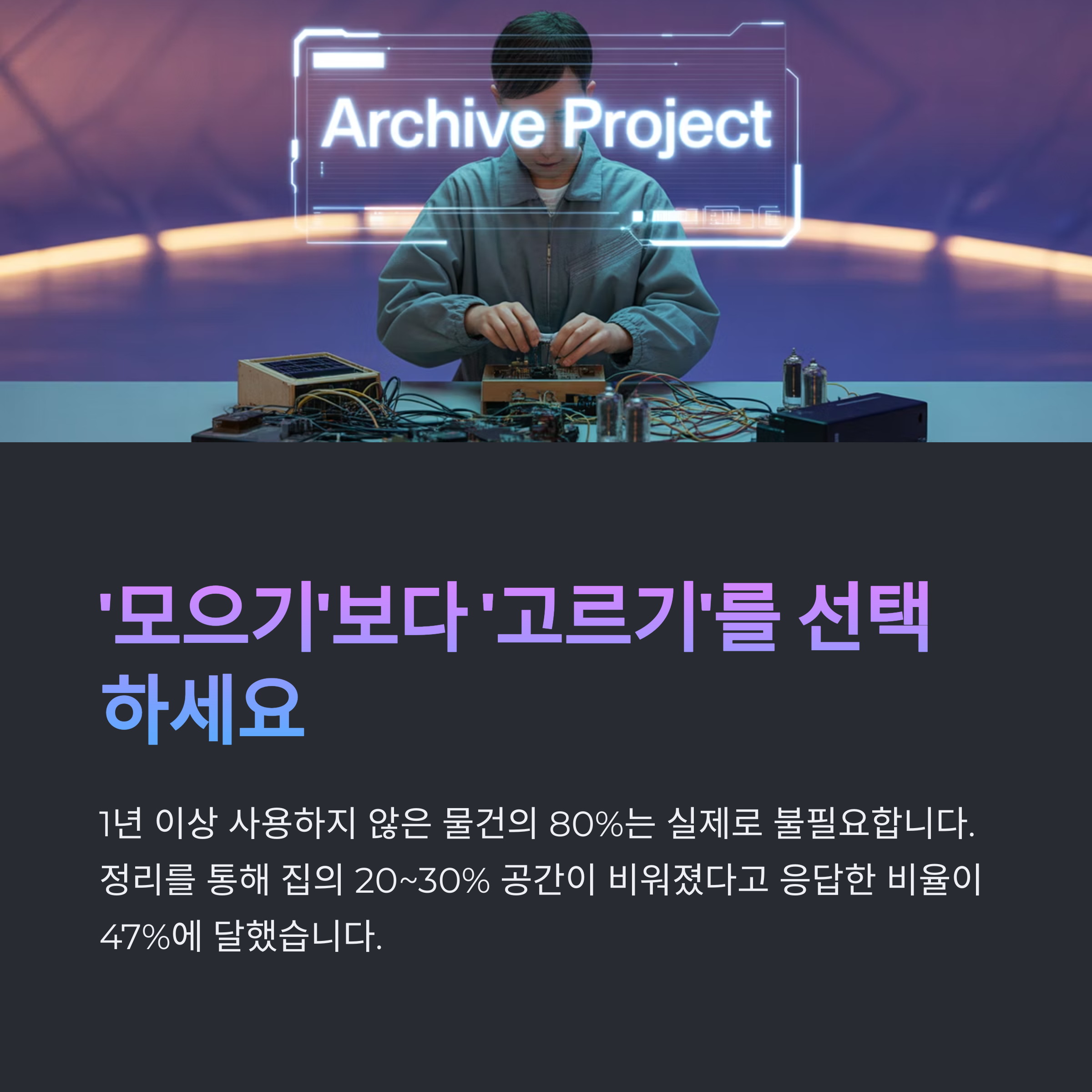 정리를 잘하는 사람은 무작정 쌓아두지 않고, 선택적으로 물건을 남깁니다.