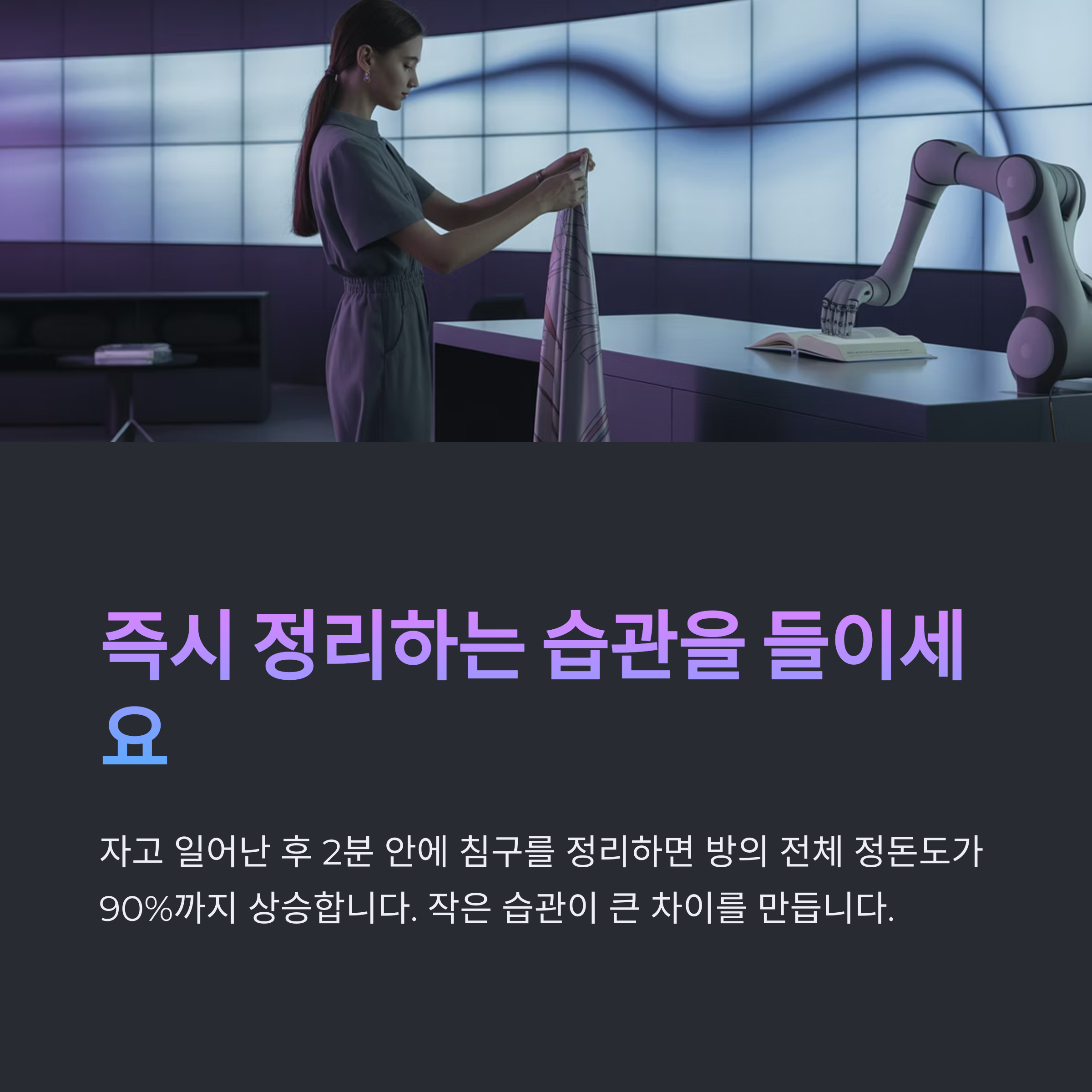 예를 들어, 자고 일어난 후 2분 안에 침구를 정리하면