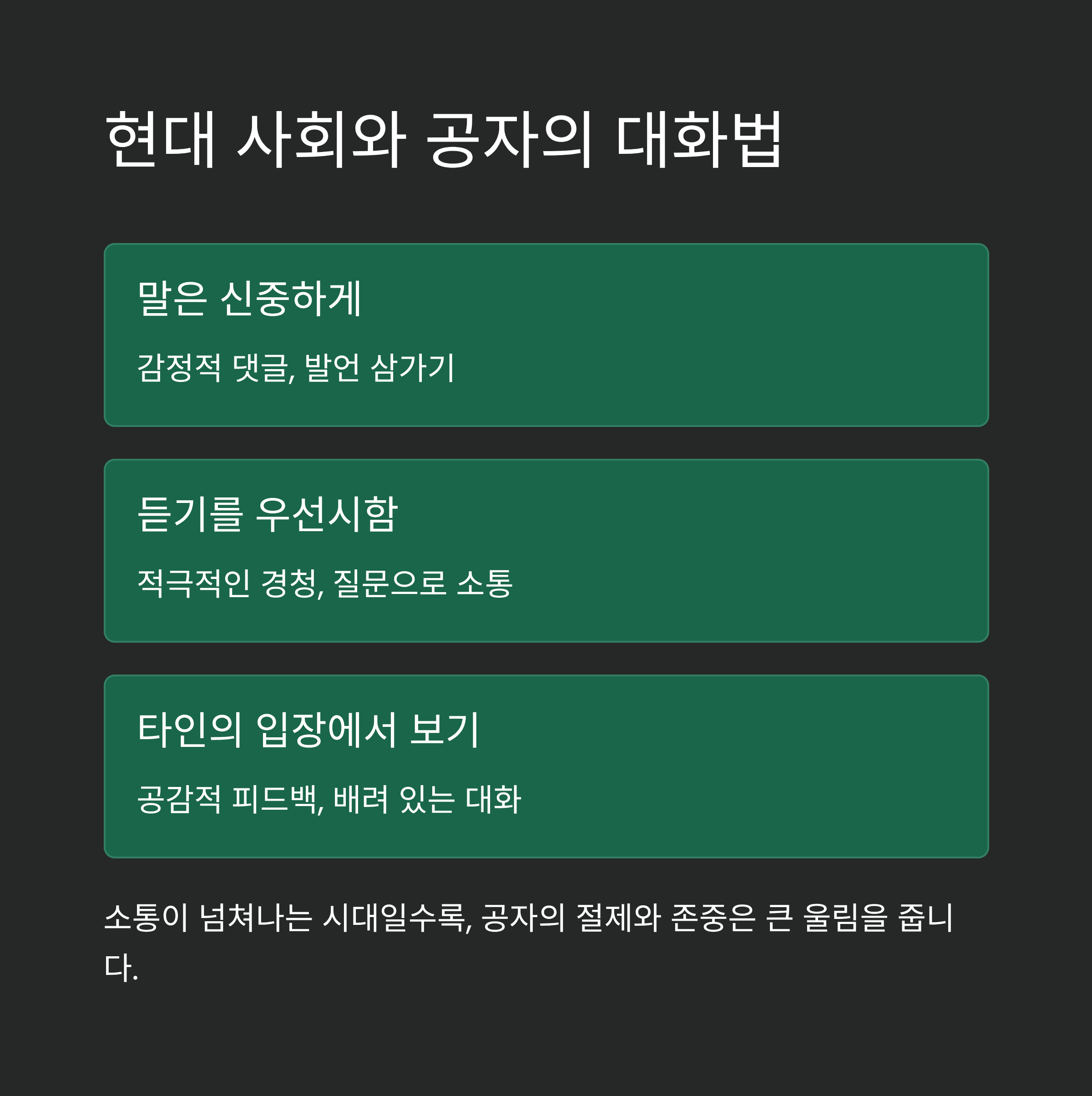 공자는 말을 아끼되, 말할 때는 반드시 상대를 존중했습니다.
