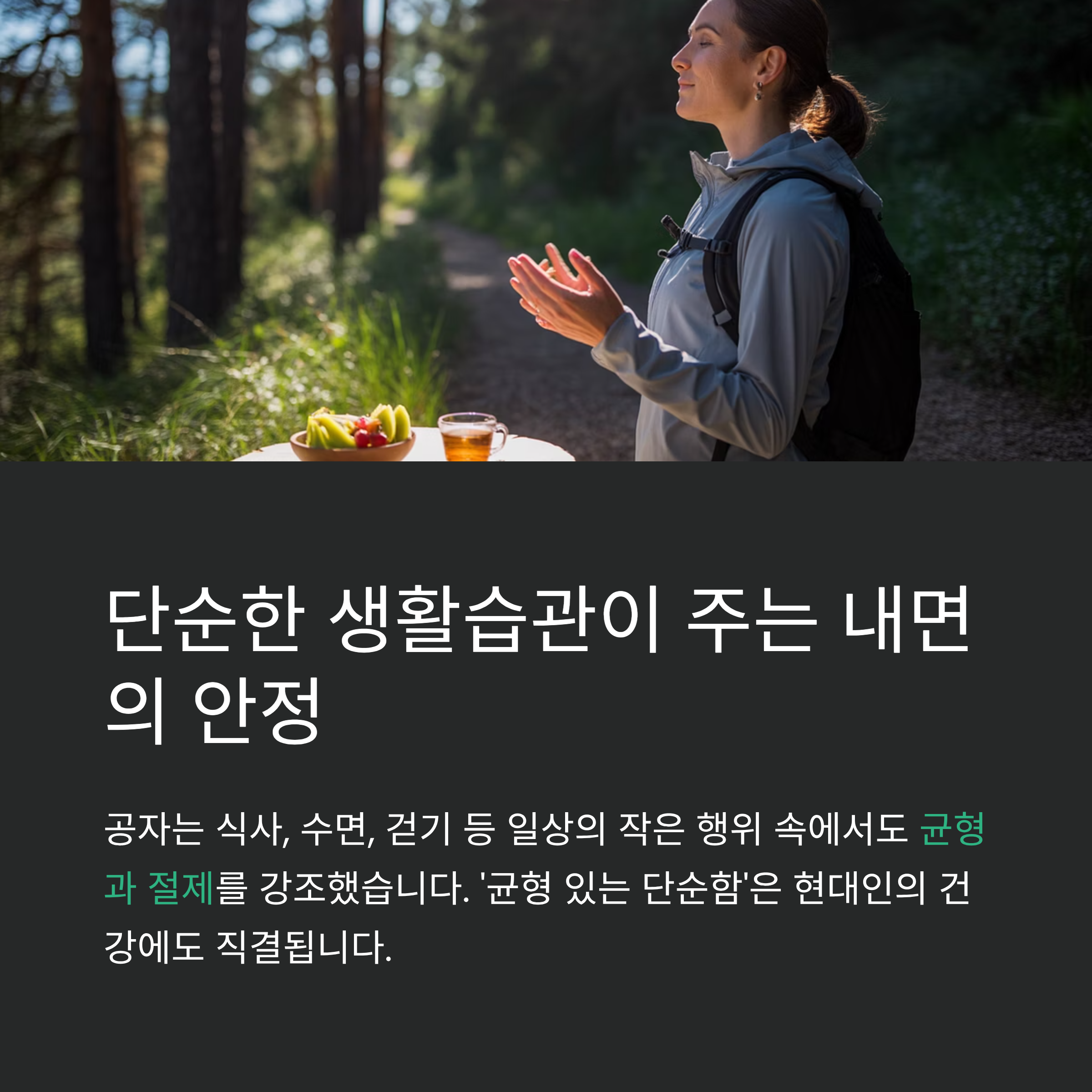 공자는 식사, 수면, 걷기 등 일상의 작은 행위 속에서도 균형과