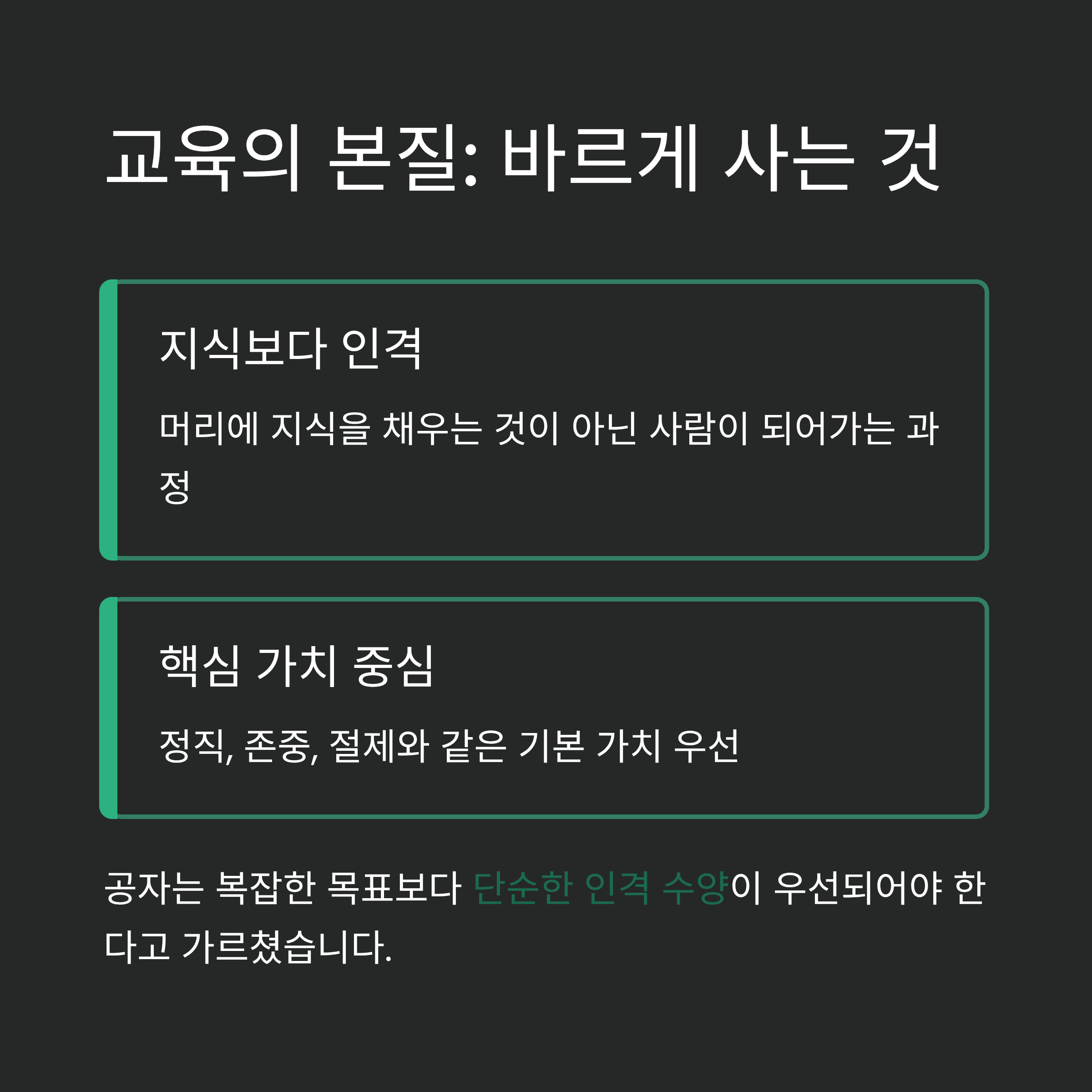교육의 본질: 많이 아는 것이 아니라, 바르게 사는 것