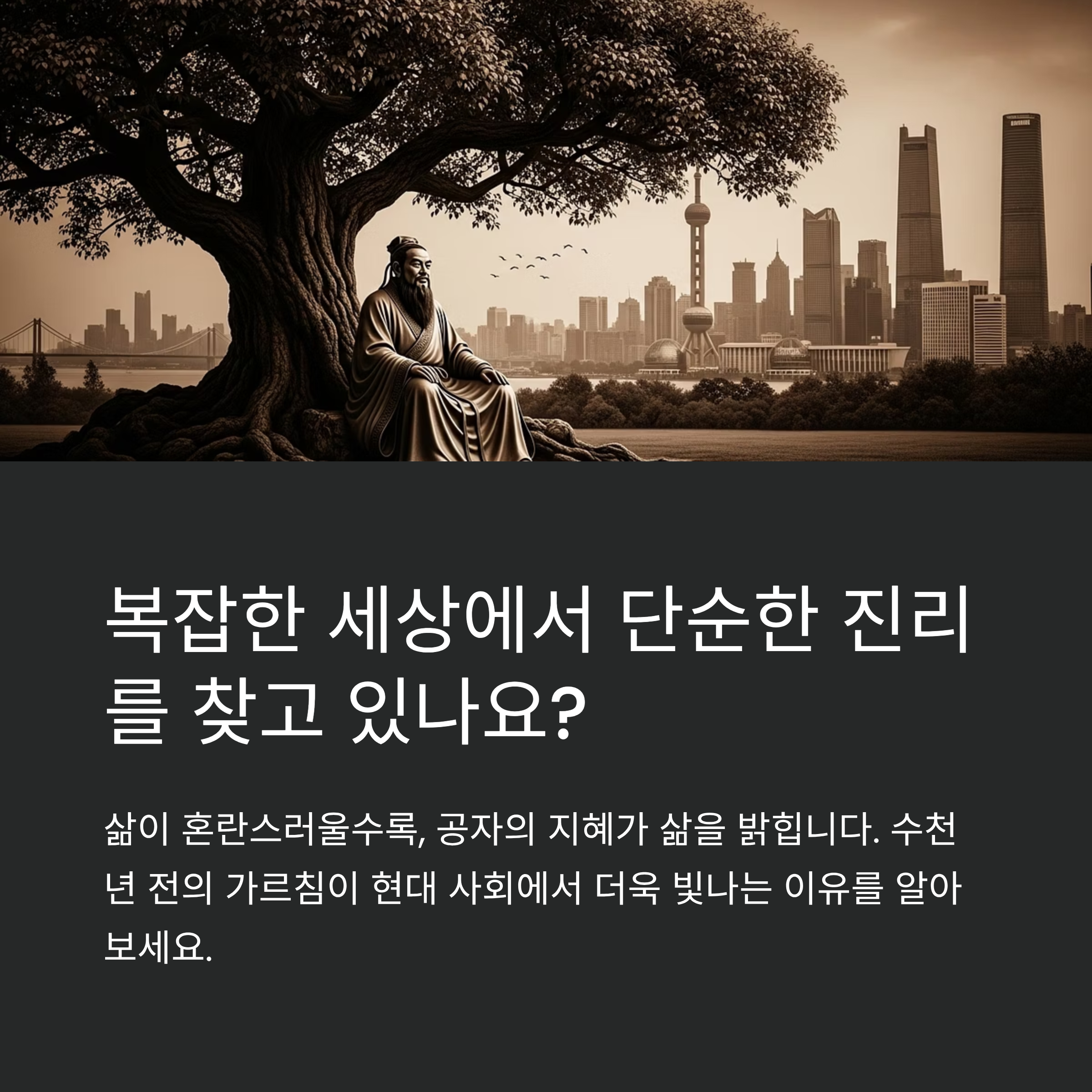 현대인의 삶은 점점 더 복잡해지고 있습니다. 기술의 발전, 빠르게 변하는 사회, 끝없이 요구되는 역할들 속에서 우리는 종종 방향을 잃곤 합니다. 그럴 때일수록 수천 년 전의 지혜, 공자의 단순함과 명료함이 오히려 깊은 울림을 줍니다. 이 글에서는 삶이 혼란스러울수록 왜 공자의 가르침이 더욱 빛을 발하는지 살펴보고, 실생활에 적용할 수 있는 공자의 사상을 통해 내면의 평온을 찾는 방법을 함께 나누겠습니다.