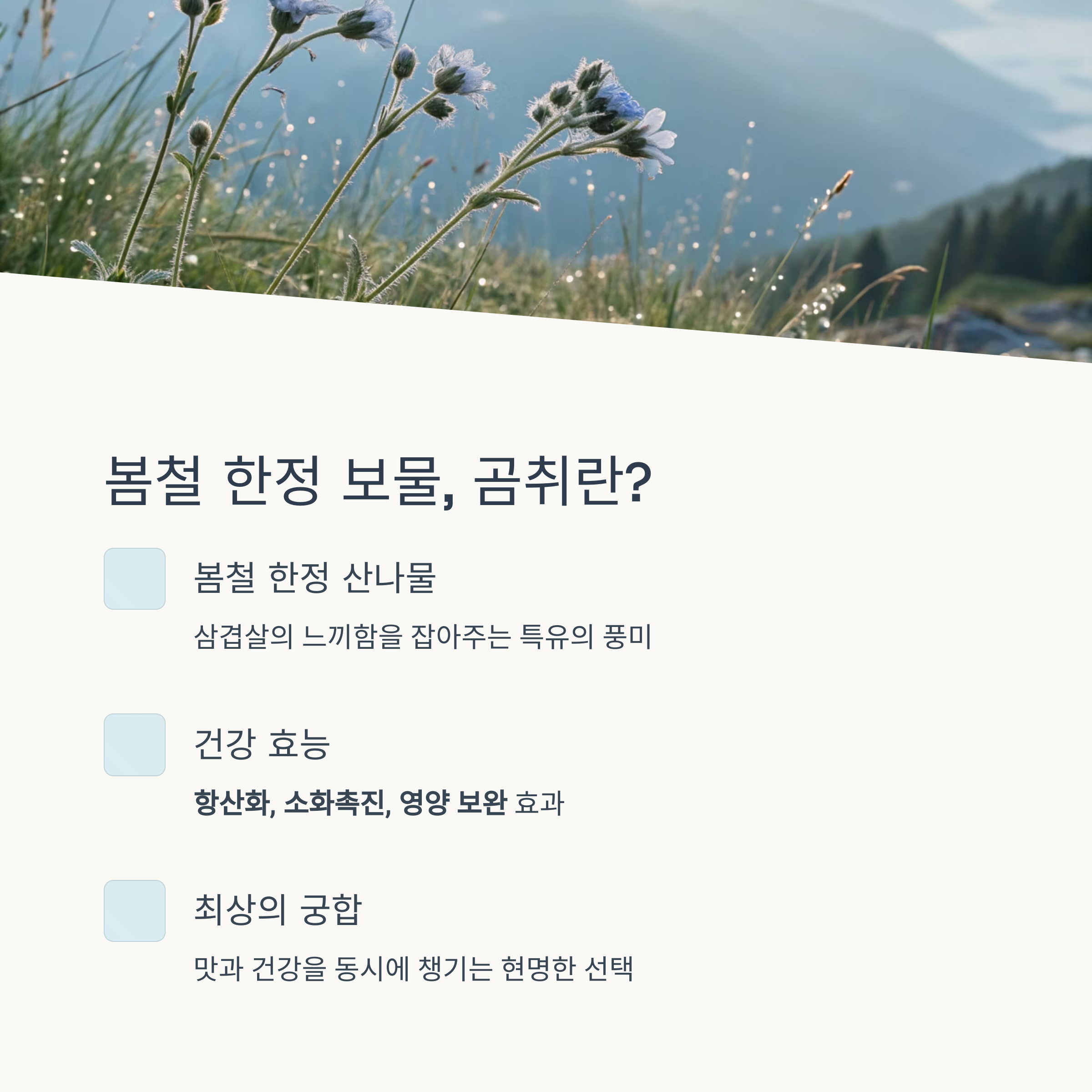 곰취는 봄철 한정으로 만날 수 있는 산나물로, 삼겹살의 느끼함을 잡아주는 특유의 풍미와 항산화, 소화촉진, 영양 보완 효과로 최근 주목받고 있습니다. 상추, 깻잎, 명이나물과는 또 다른 매력과 기능을 지닌 곰취는 단순한 맛 조합을 넘어서 건강까지 생각한 최상의 궁합을 보여줍니다. 본 글에서는 곰취의 영양적 가치, 삼겹살과의 조합 이유, 기존 쌈채소와의 비교 분석을 통해, 왜 요즘 미식가들이 곰취에 주목하는지를 살펴봅니다.