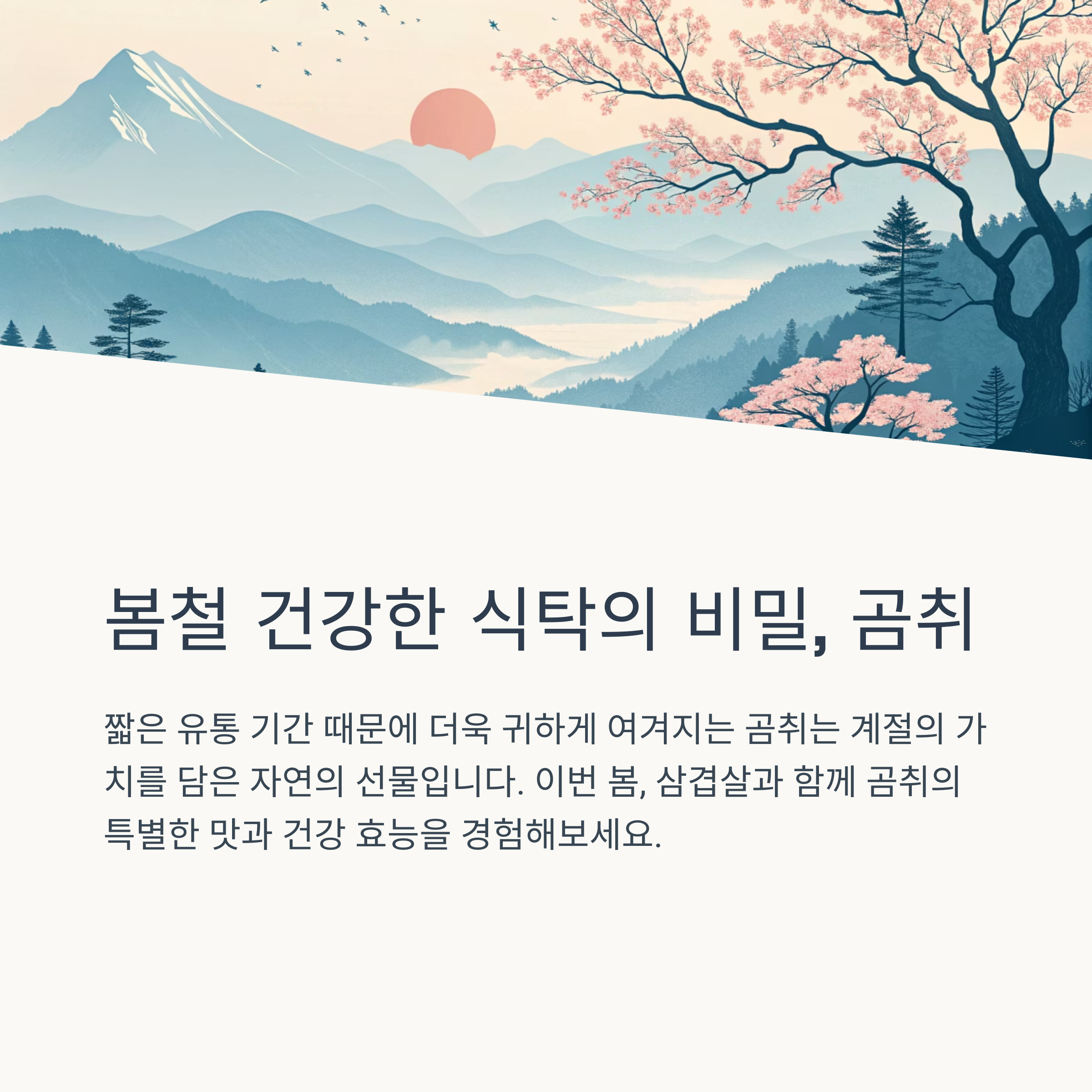 짧은 유통 기간 때문에 더욱 귀하게 여겨지는 곰취는, 계절의 가치를 담은 자연의 선물이라 할 수 있습니다.