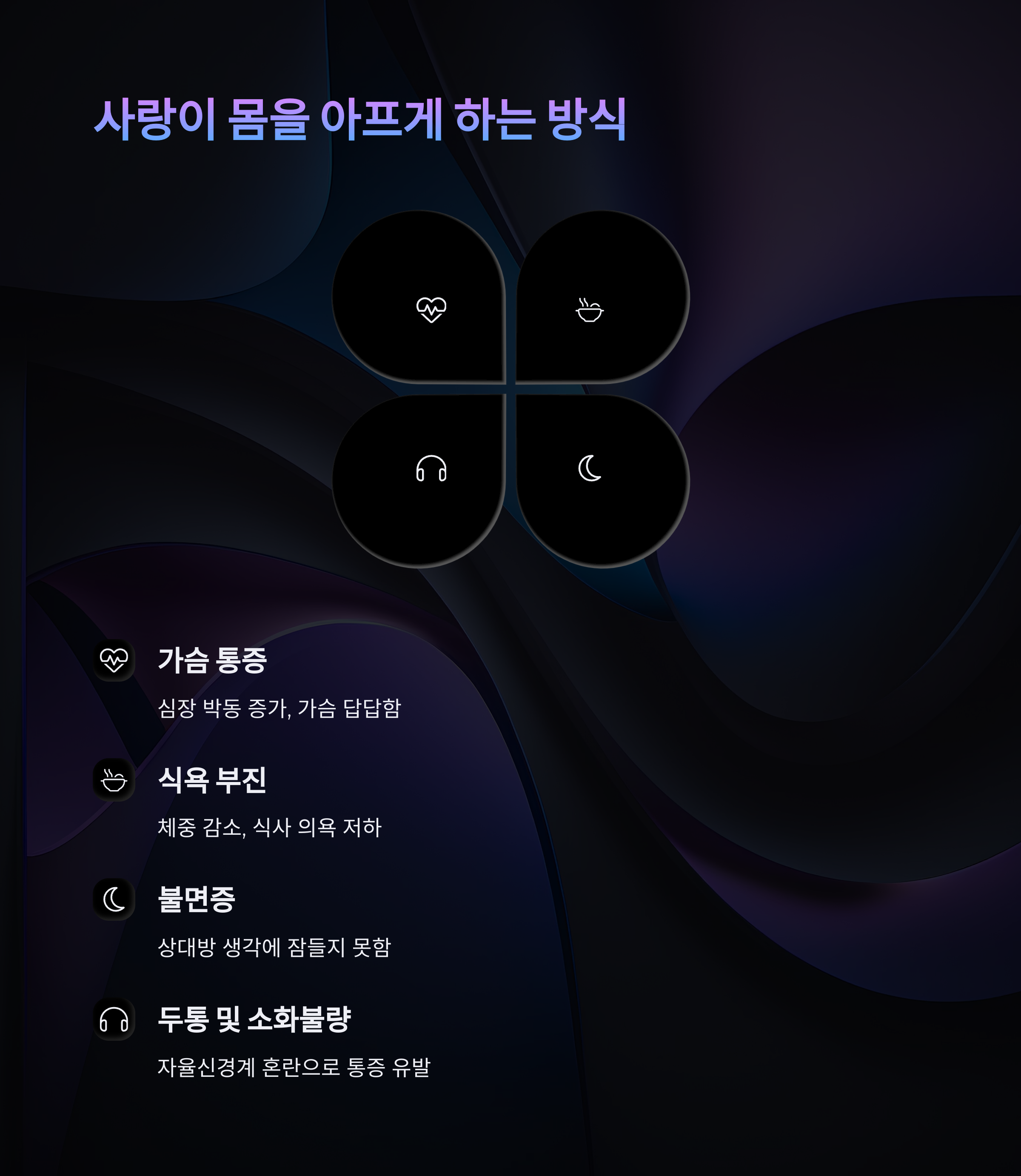 | 불면증 | 상대방 생각에 잠들지 못함 |