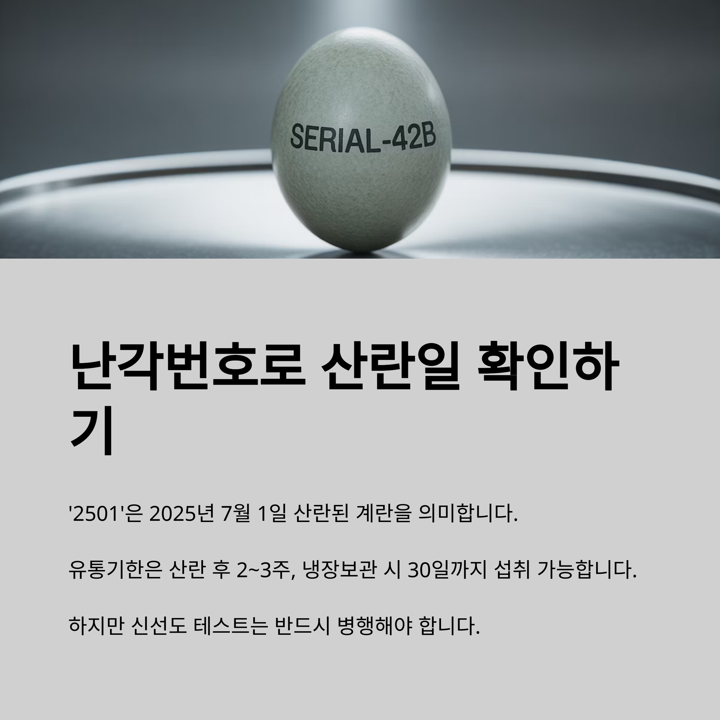 예를 들어 ‘2501’은 2025년 7월 1일 산란된 계란을 의미합니다.