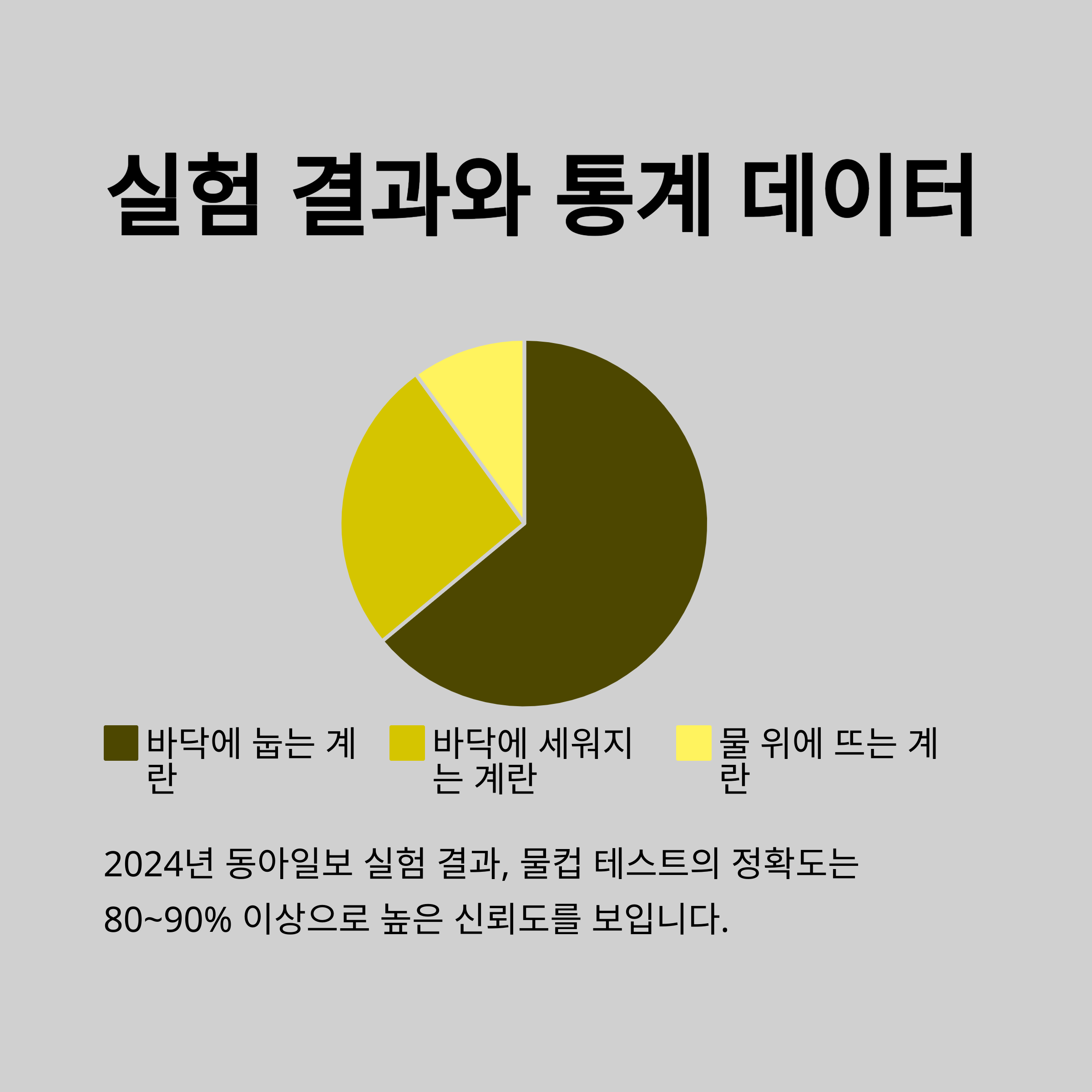 2024년 동아일보의 실험에 따르면, 총 50개의 계란을 물컵 테스트한 결과는