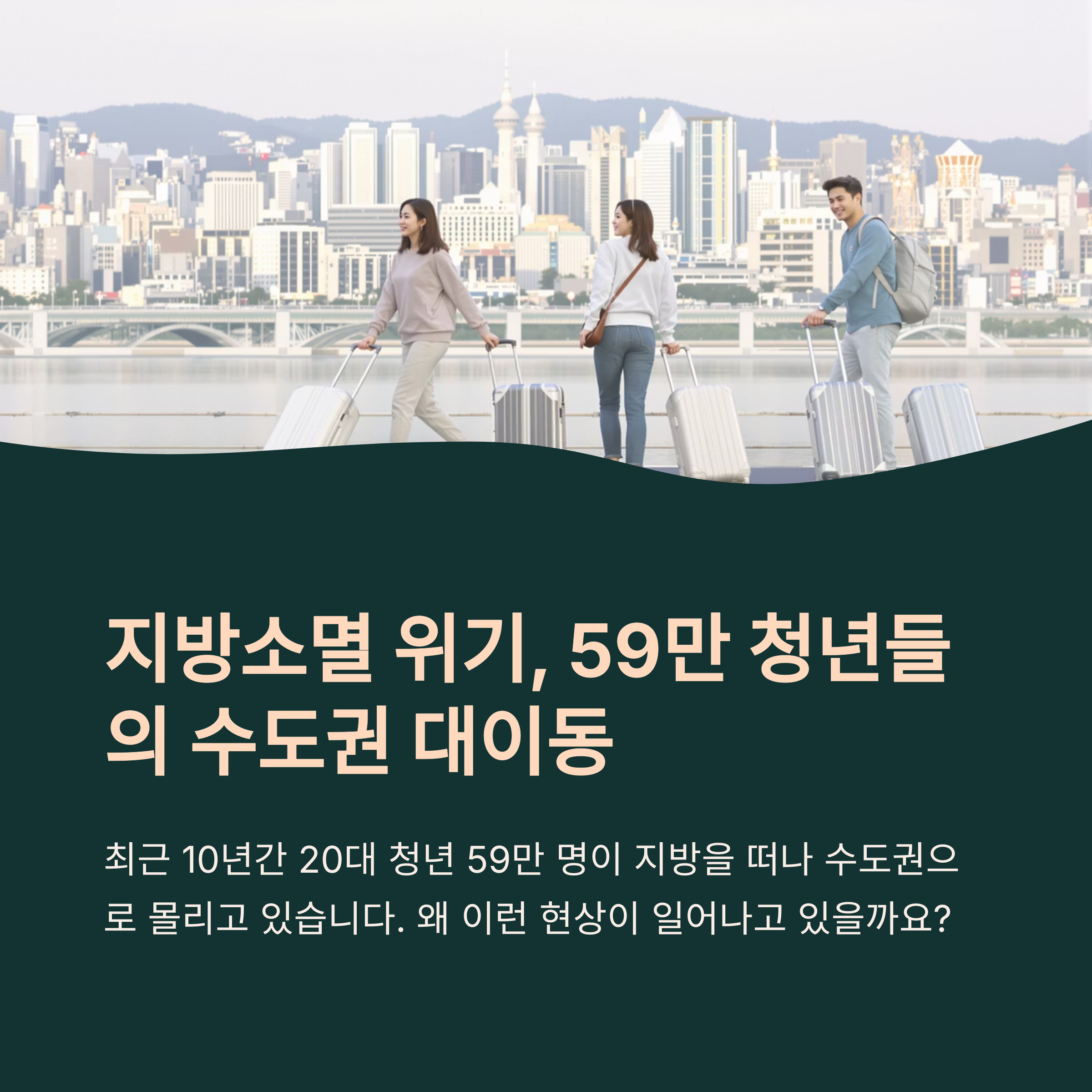 안녕하세요. 요즘 뉴스를 보다 보면 자주 접하게 되는 단어가 하나 있어요. 바로 ‘지방소멸’. 처음엔 먼 얘기처럼 느껴졌는데, 요즘은 주변 청년들 중에도 지방행을 고민하거나 실제로 떠나는 사람들을 자주 봅니다. 저도 한동안 서울살이에 지쳐 ‘내려갈까?’ 고민했던 적이 있거든요. 이 글에서는 왜 청년들이 서울을 떠나고, 비수도권 유입 정책이 주목받고 있는지 그 이유를 함께 찬찬히 살펴보려고 해요. 지금 청년 인구의 흐름은 단순한 통계가 아니라, 우리 세대의 진짜 삶의 방향을 말해주고 있으니까요.