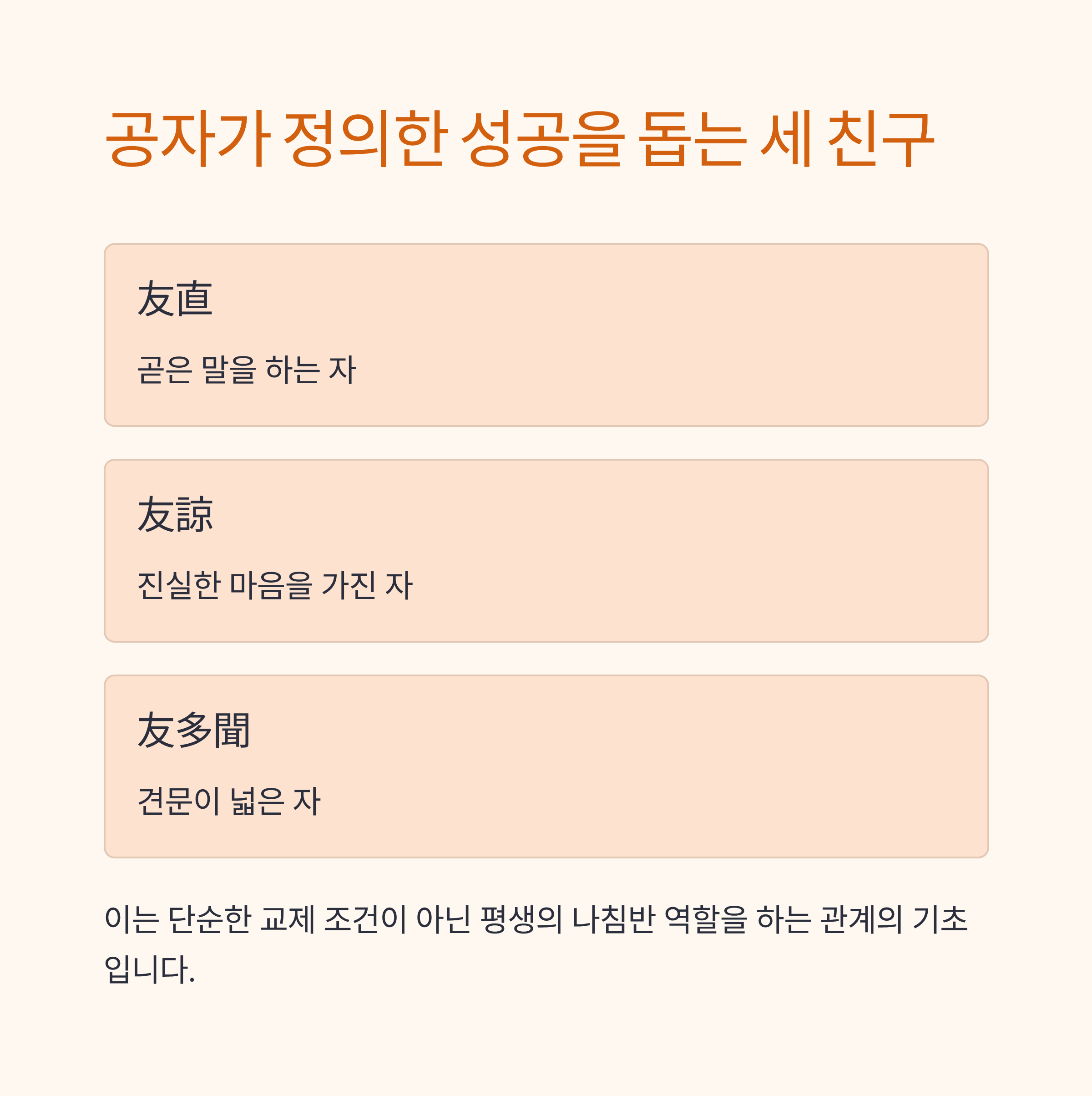 공자는 도움이 되는 친구로 友直, 友諒, 友多聞을 꼽았습니다.