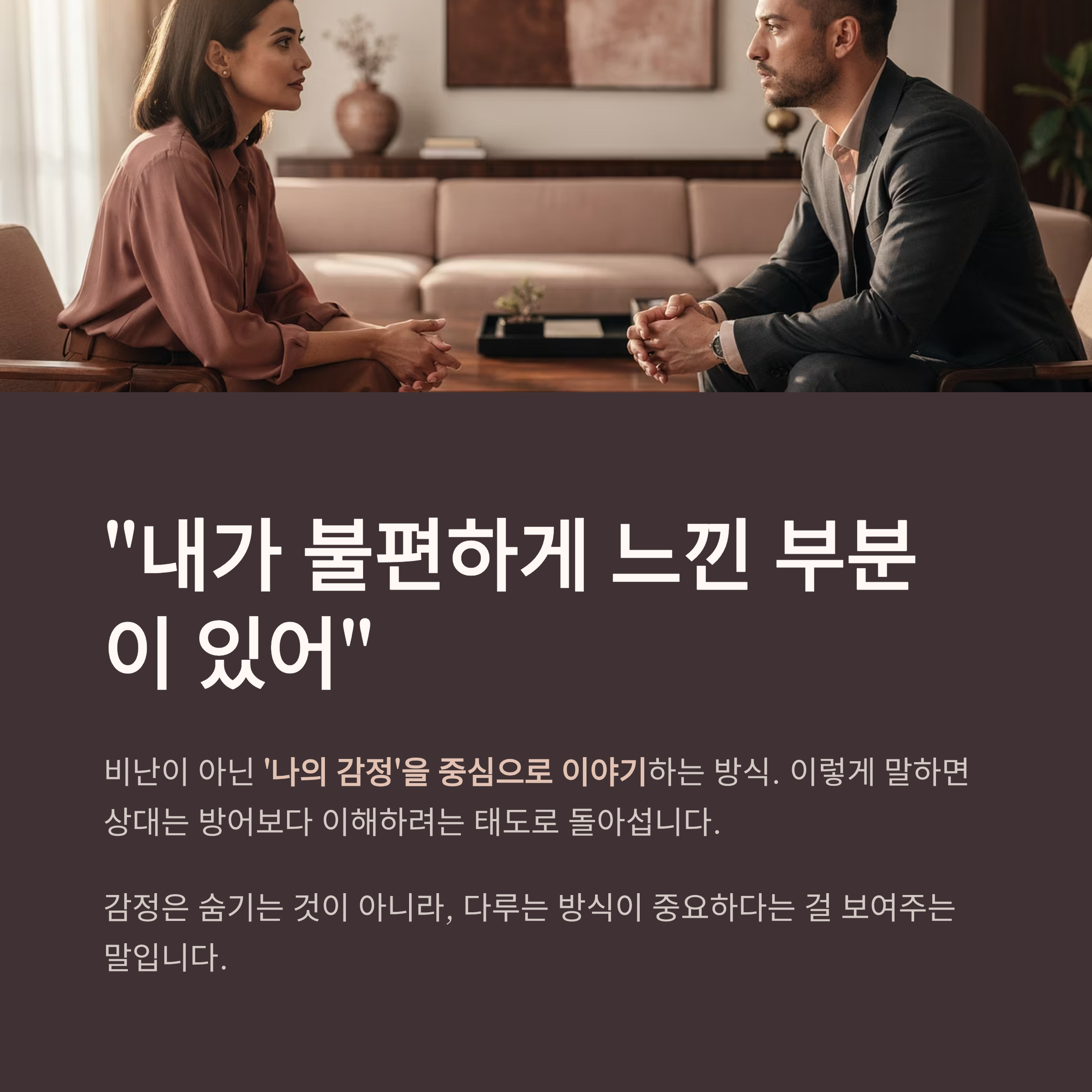 이 말은 감정의 책임을 자신이 짊어지는 방식으로, 관계에 미치는 불필요한 피해를 줄입니다.