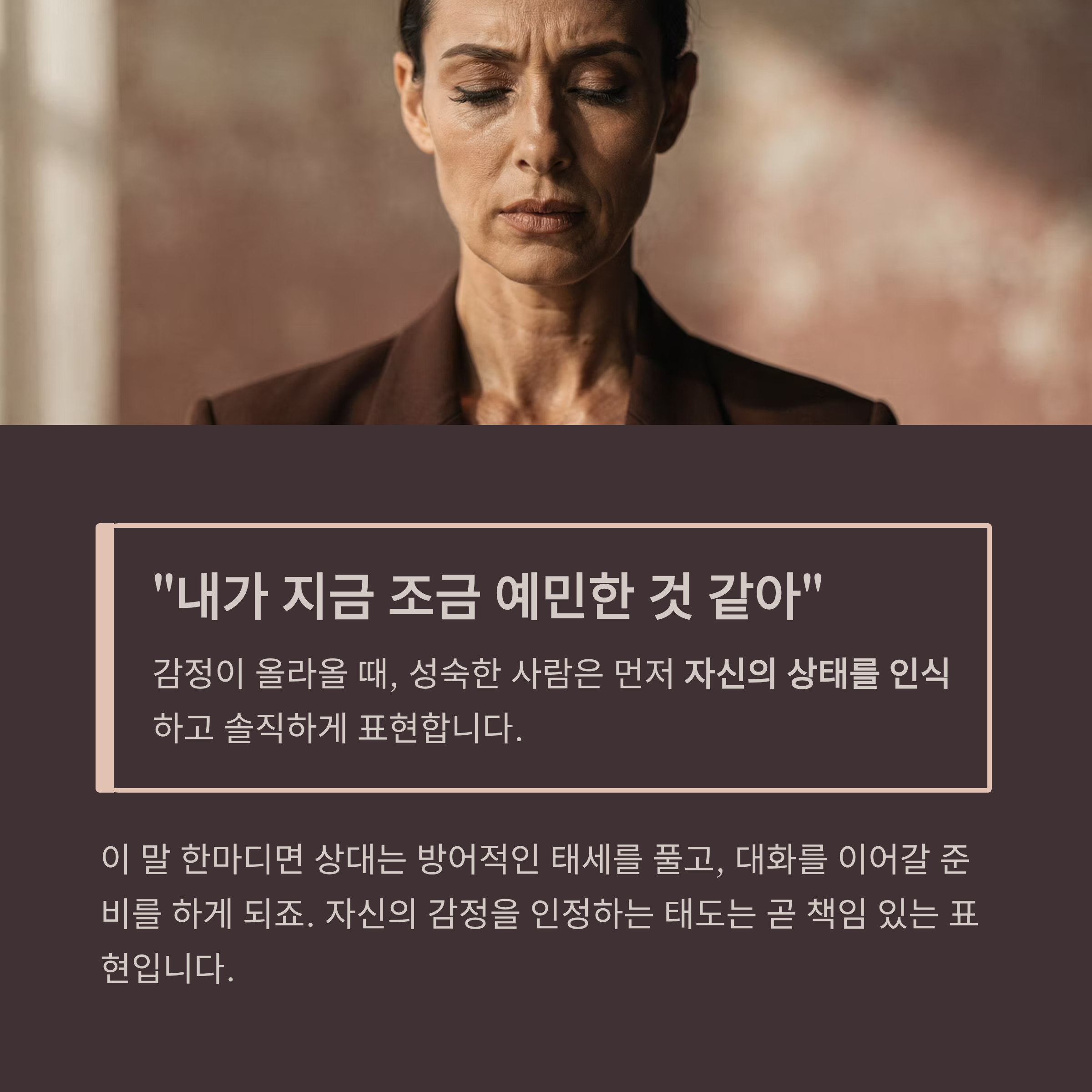 성숙한 사람은 감정이 격해질 때, 문제를 외부로 돌리기보다 자기 경험에 기반한 표현을 합니다.