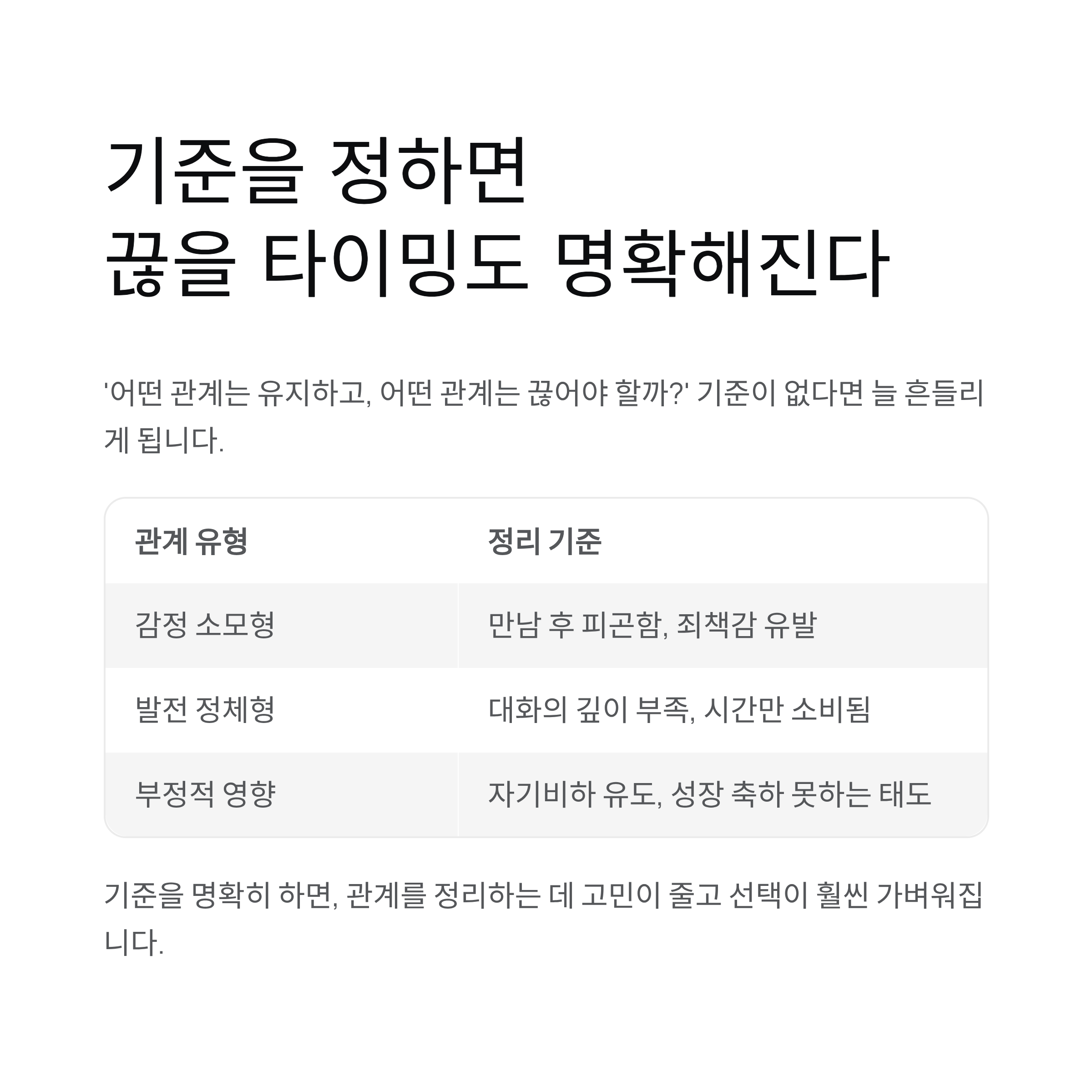 관계를 정리하는 데 고민이 줄고