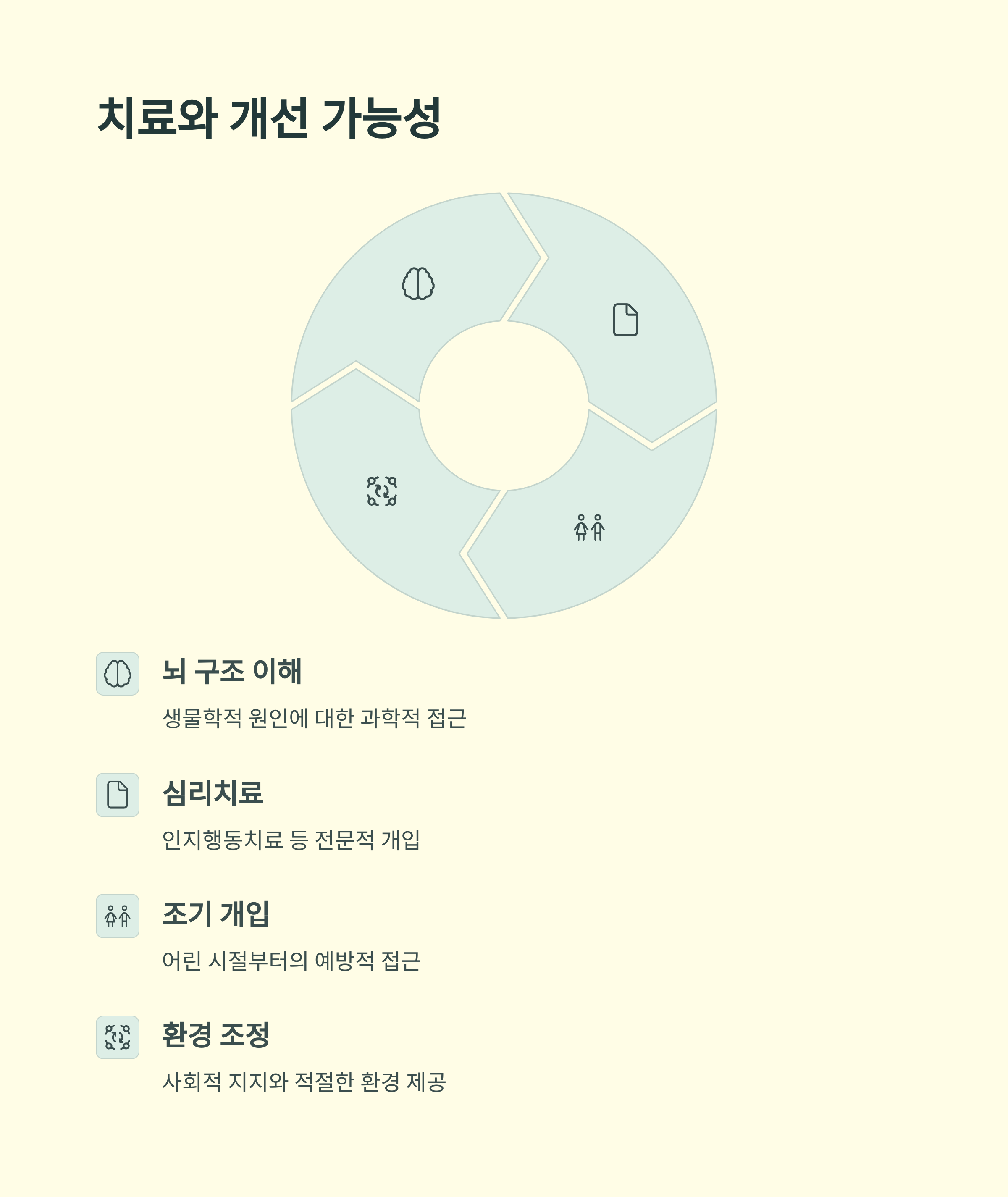 심리치료, 환경 조정, 조기 개입이 핵심이며, 무조건적인 배척이 아닌 이해 기반 접근이 필요합니다.