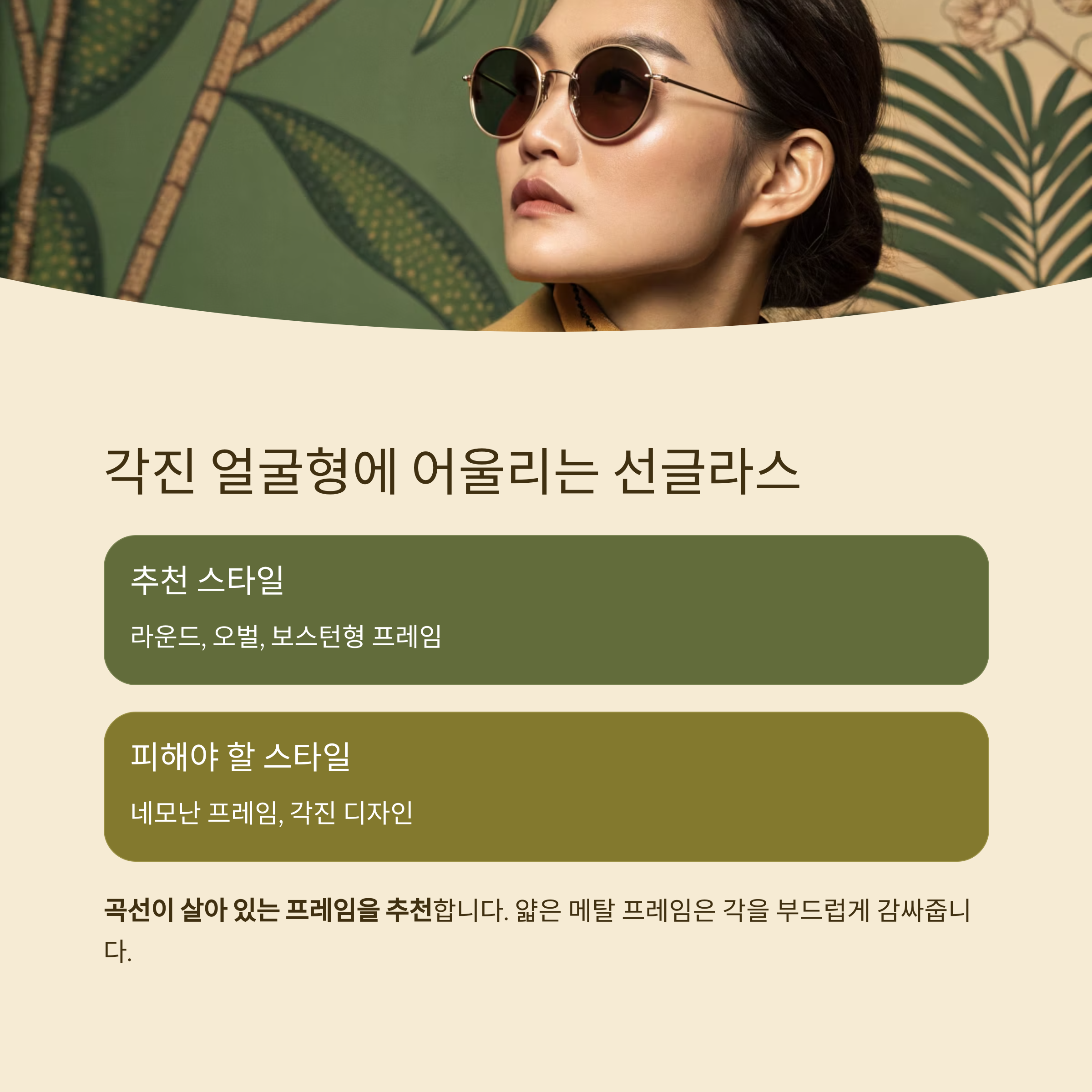 각진 얼굴형 : 부드러운 곡선 프레임이 정답