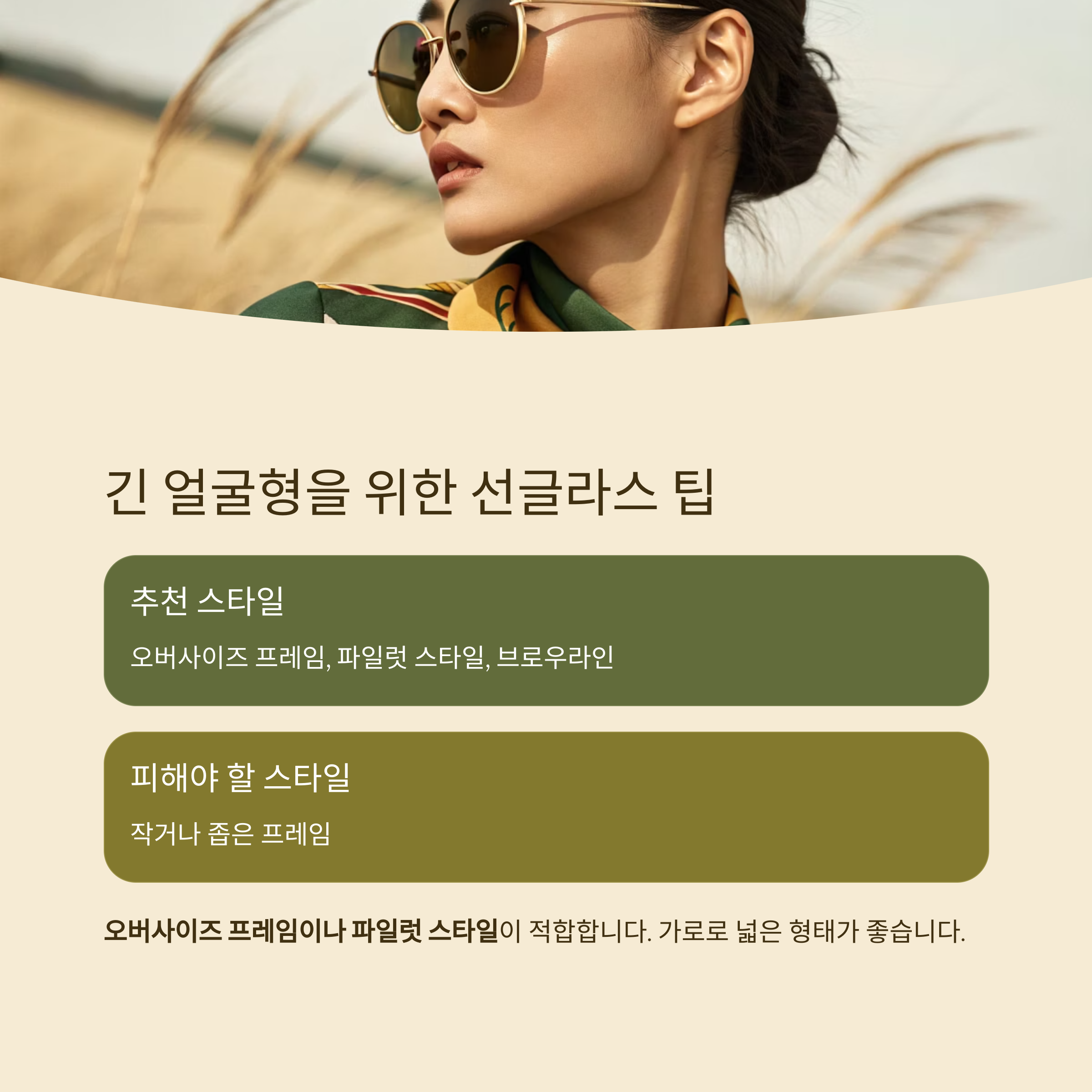 이럴 때는 오버사이즈 프레임이나 파일럿 스타일이 적합합니다.