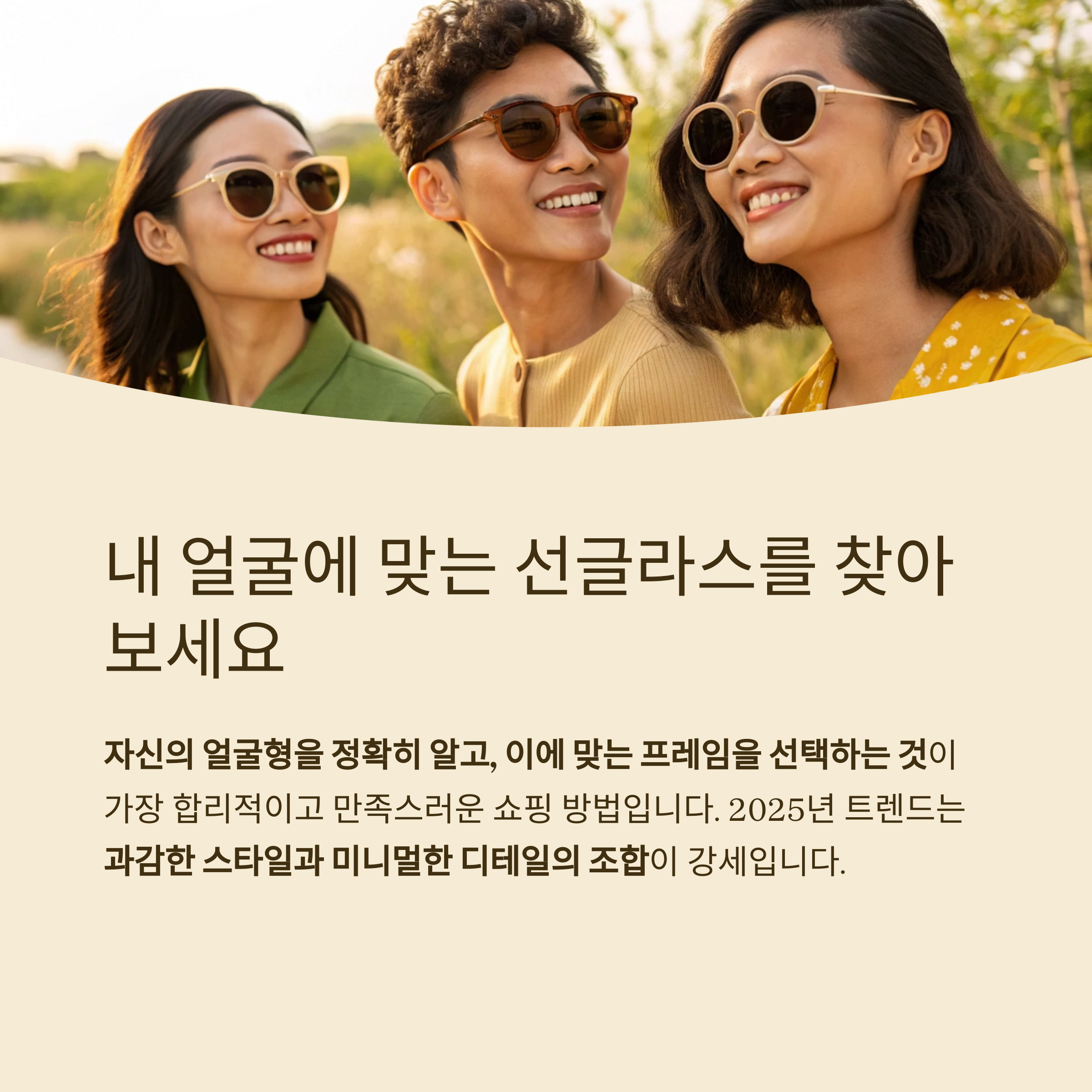 2025년 최신 트렌드와 소비자 데이터를 바탕으로 얼굴형별 선글라스 선택법을 정리해드립니다.