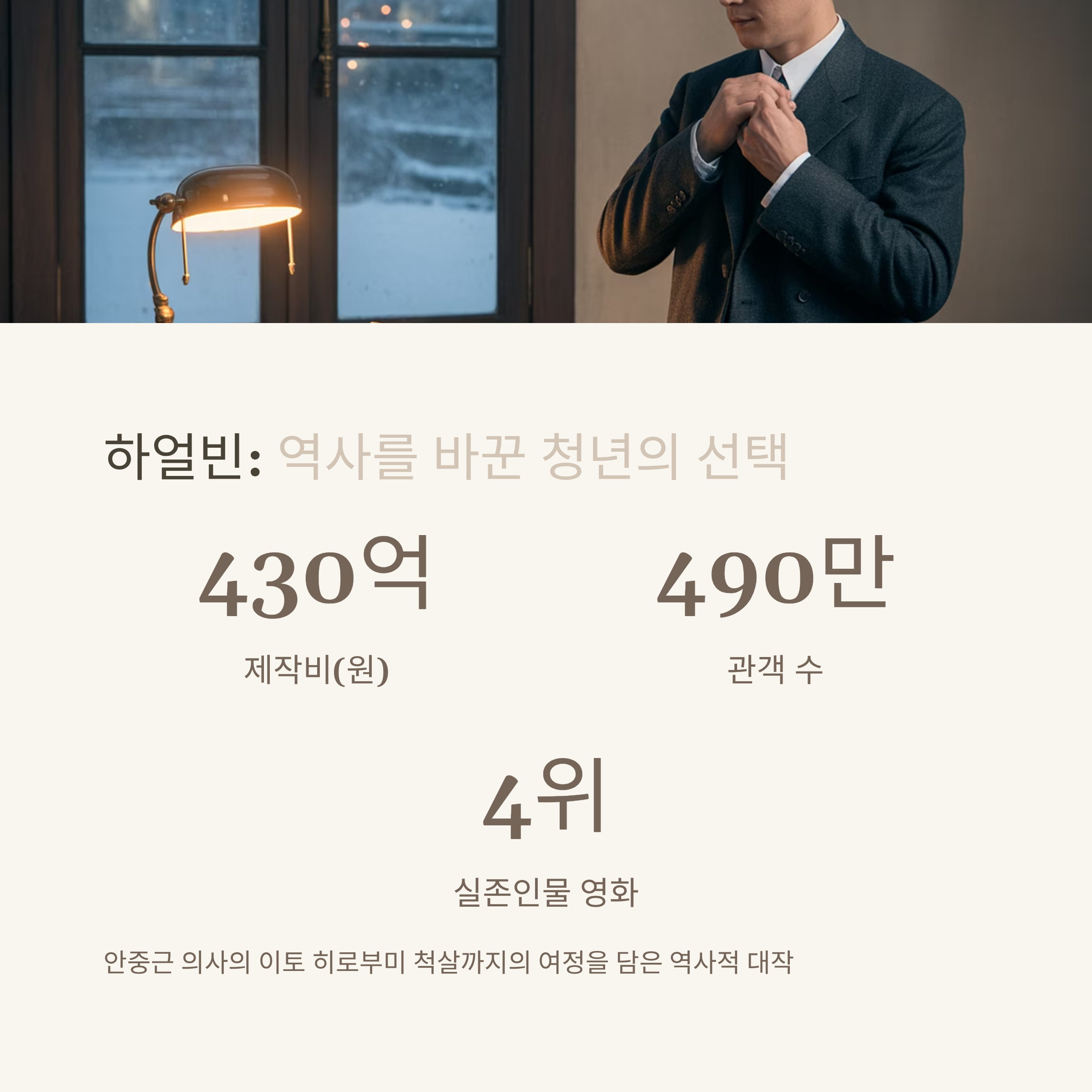 2024년 개봉작 ‘하얼빈’은 안중근 의사의 이토 히로부미 척살 전까지의 여정을 담은 대작입니다.