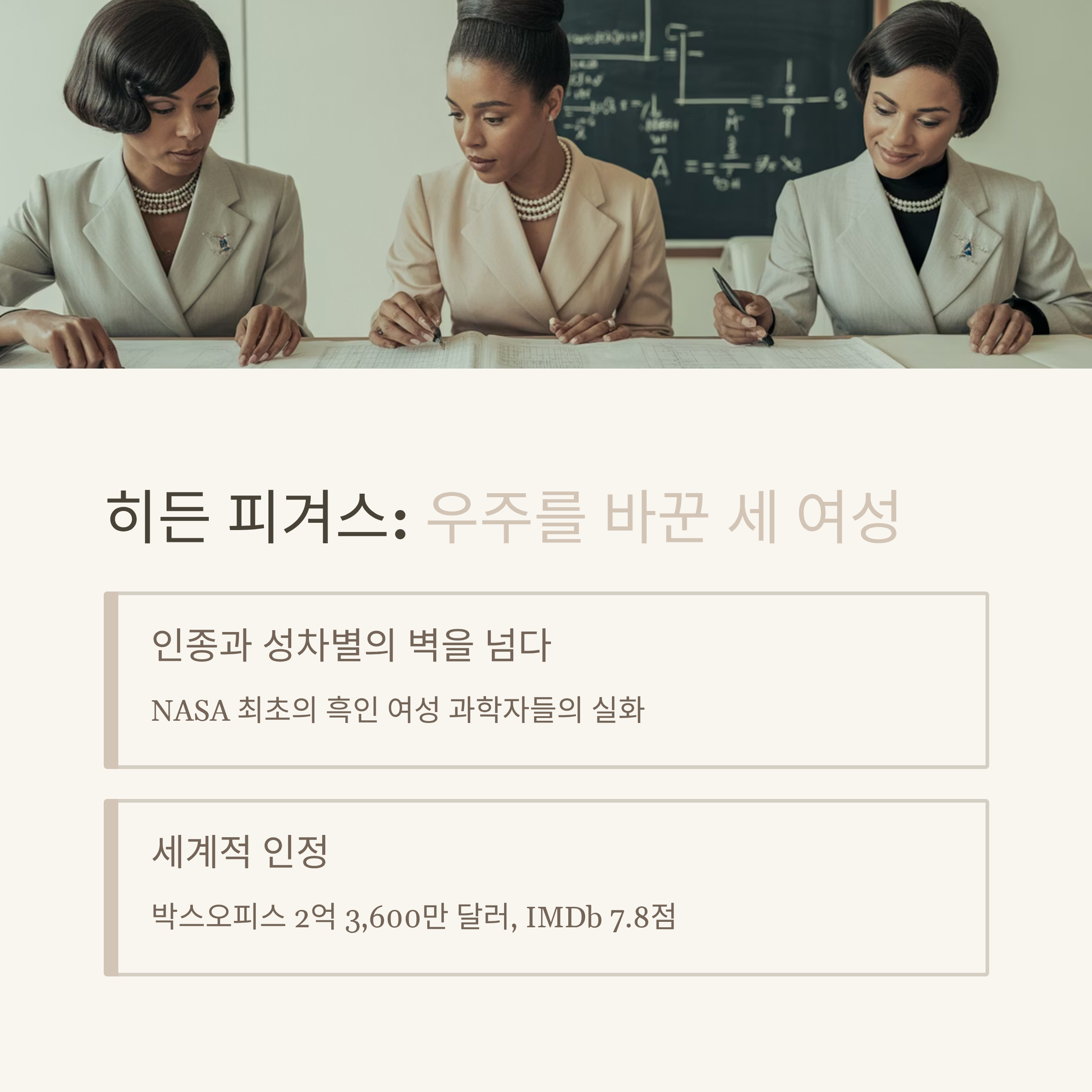 NASA 역사상 처음으로 흑인 여성 과학자들이 유인 우주비행 성공에 핵심 역할을 했다는 놀라운 실화를 바탕으로 한 영화입니다.