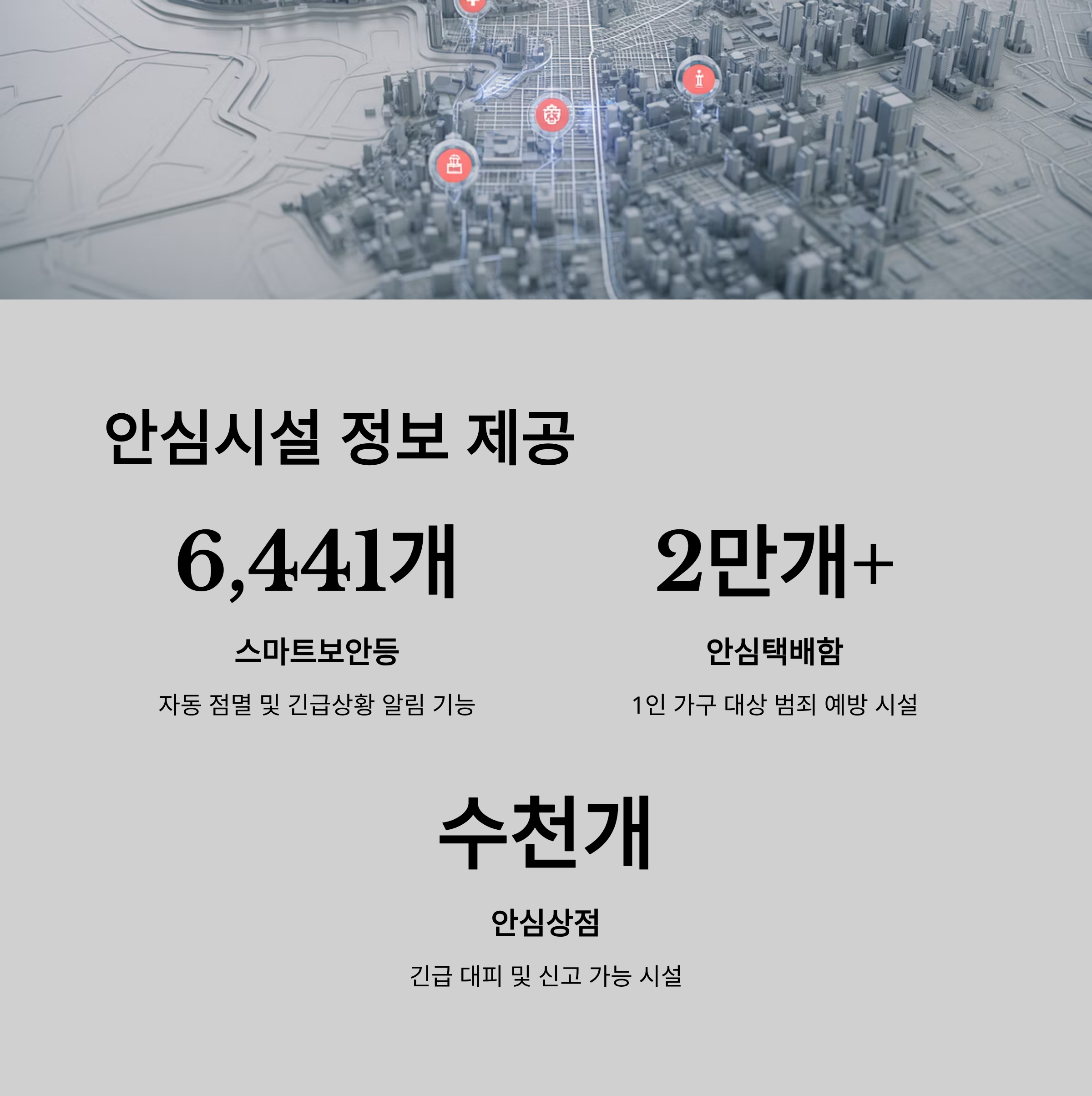 | 안심택배함 | 약 20,000개 이상 | 1인 가구 대상 범죄 예방 |