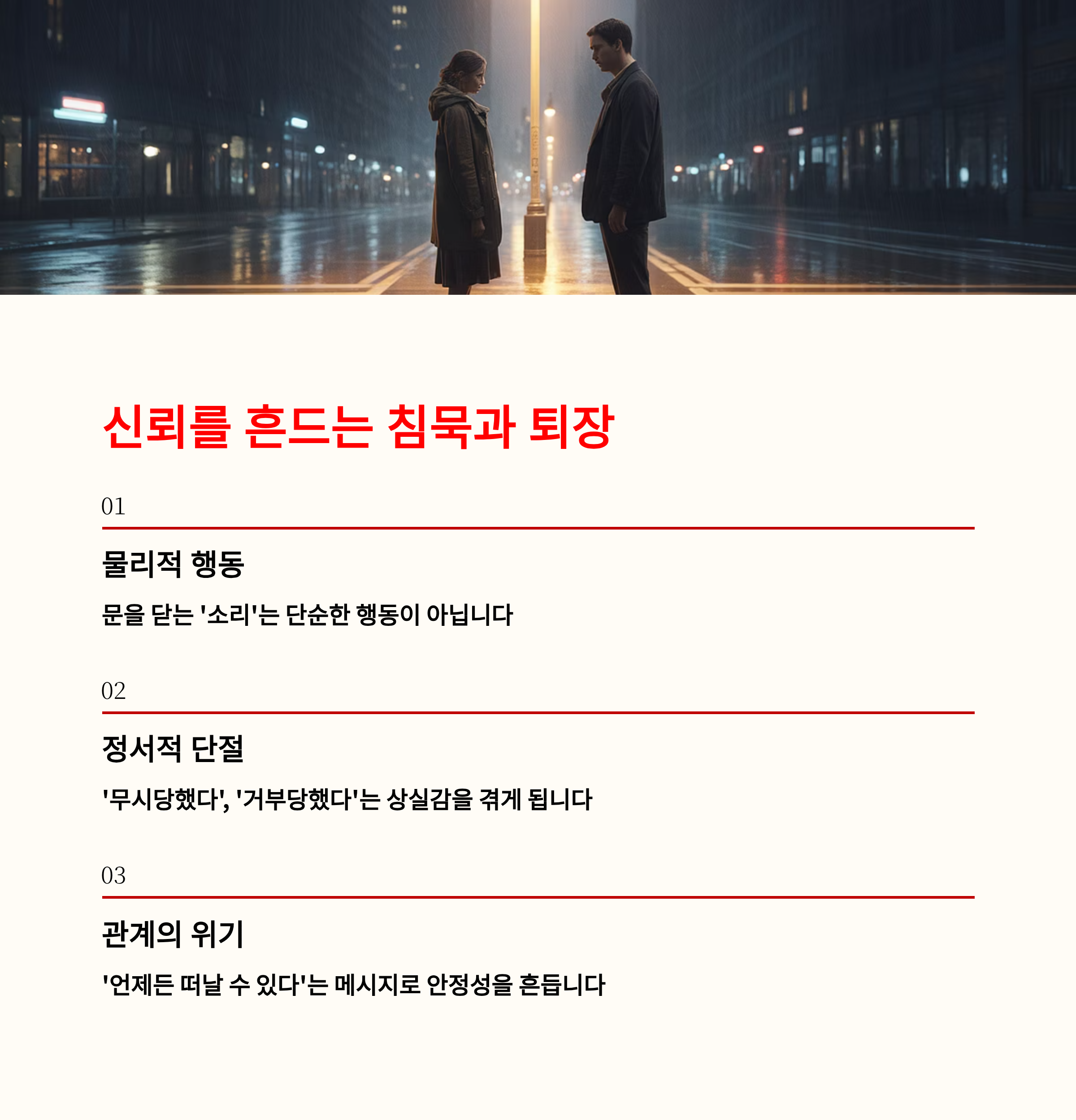 문을 닫는 ‘소리’는 물리적 행동일 뿐 아니라, 정서적 단절의 신호일 수 있어요.