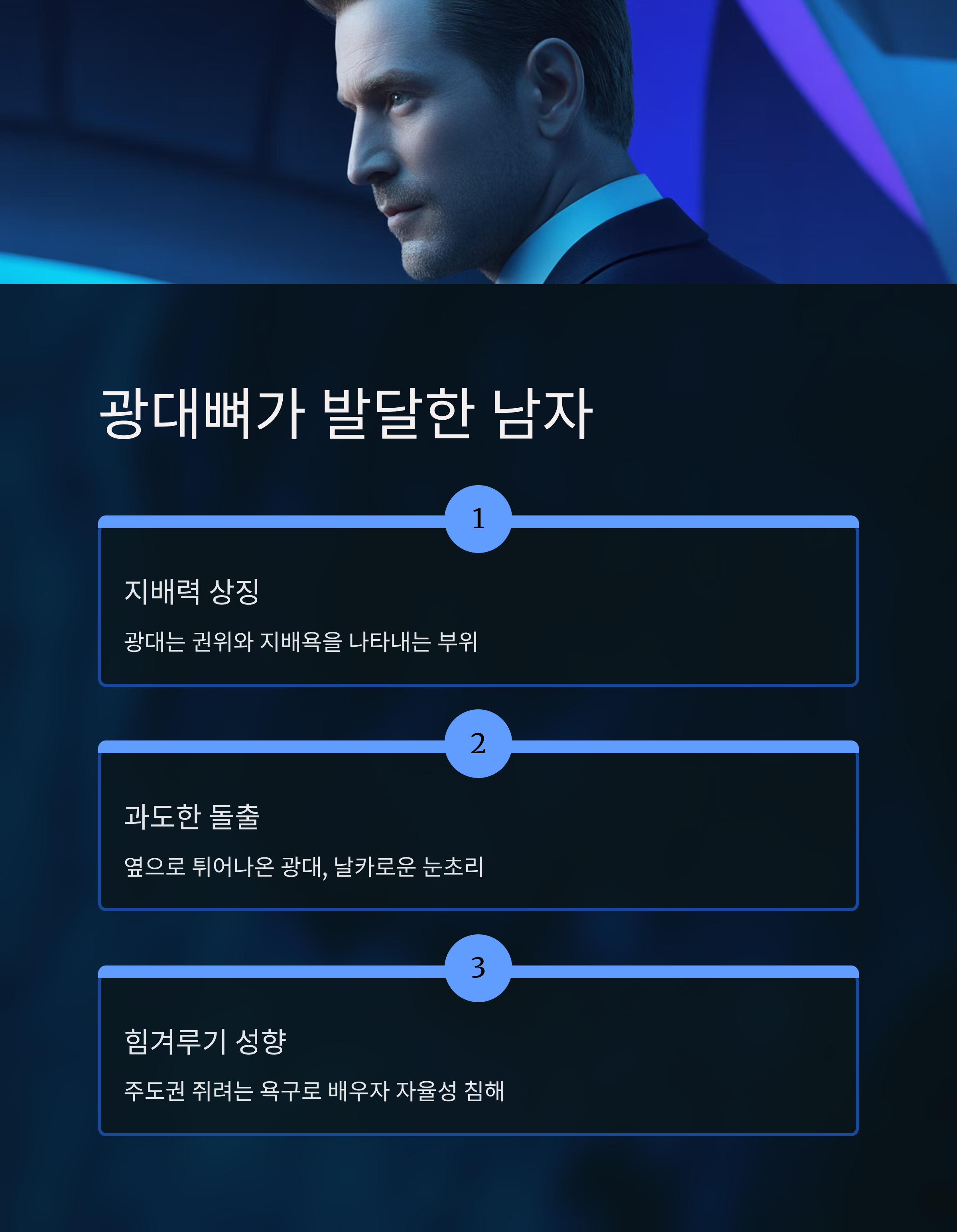 광대는 ‘지배력’과 ‘권위’를 상징하는 부위로 여겨지기도 합니다.