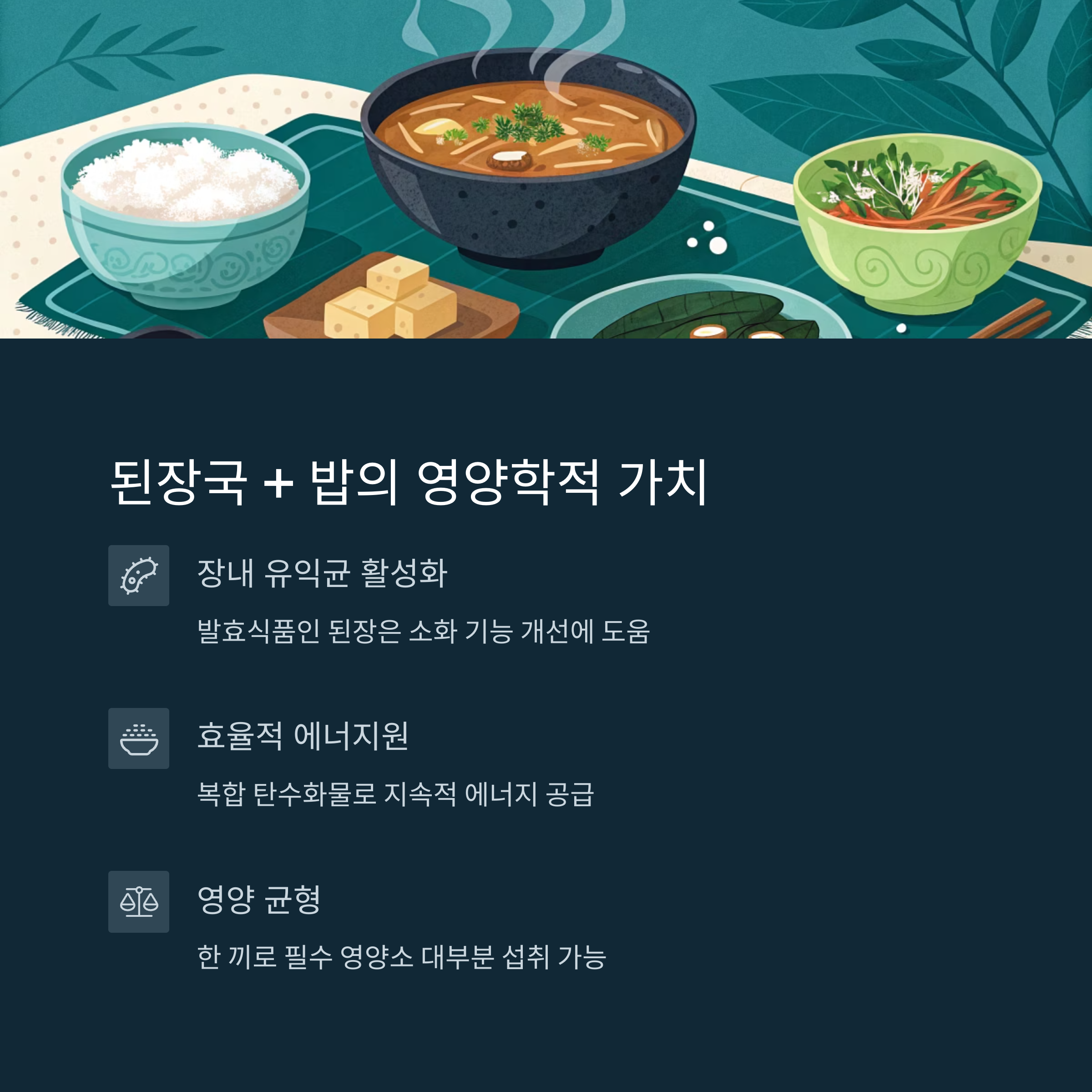 된장국은 장내 유익균 활성과 소화 기능에 도움을 주는 발효식품입니다.