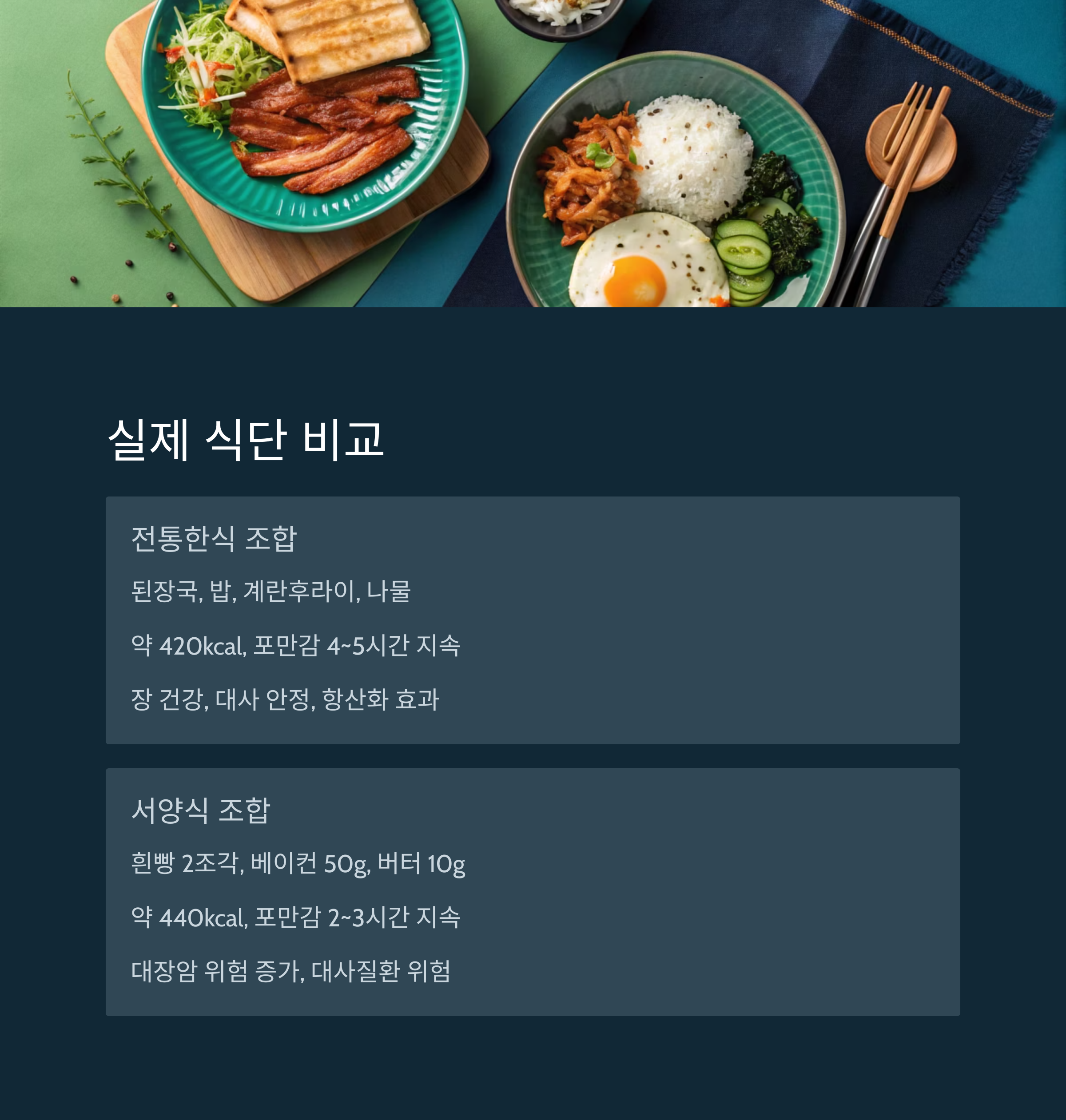 영양소 구성, 포만감 지속력, 질병 예방 측면에서 비교 분석된 데이터를 통해