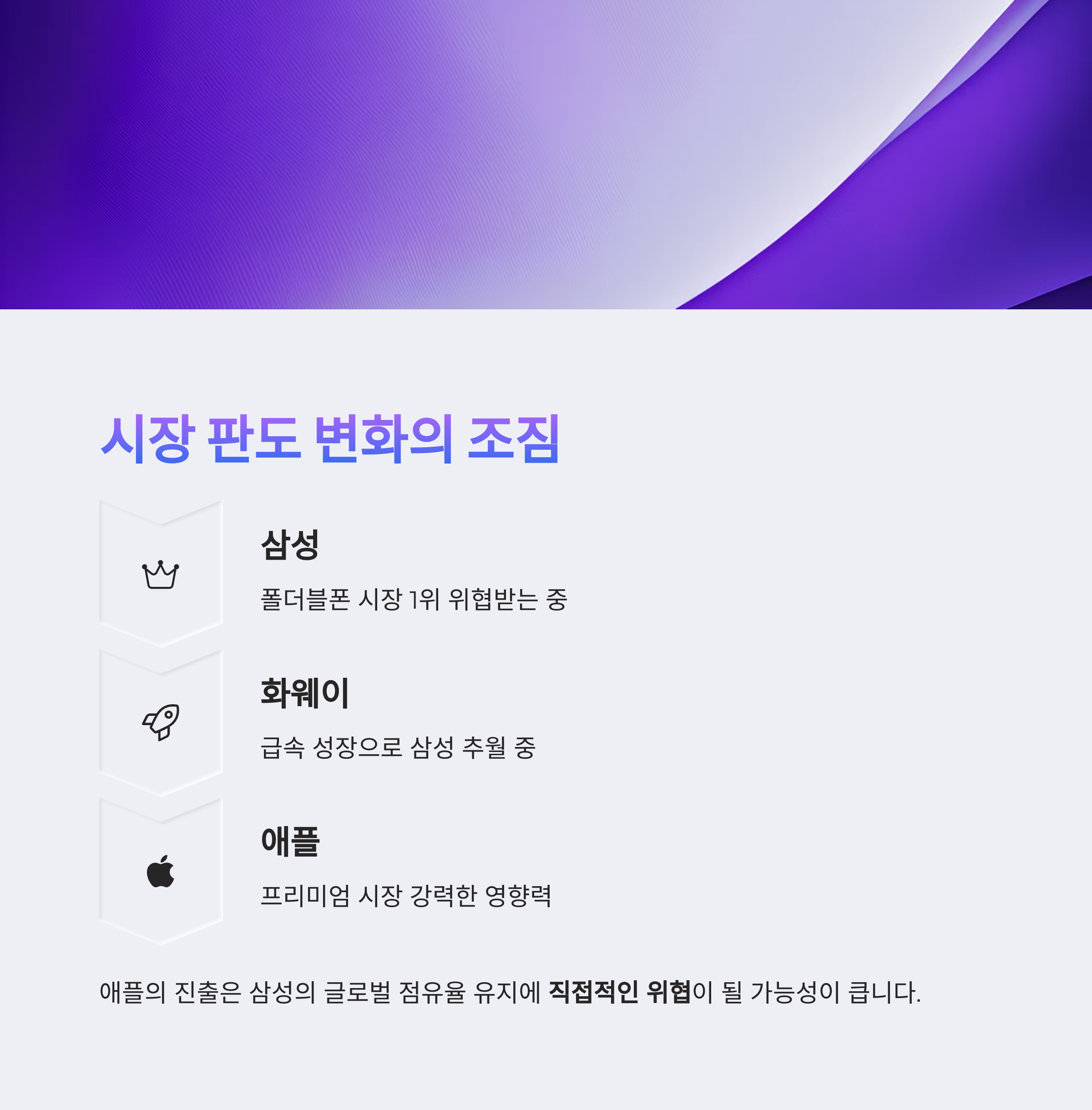 여기에 애플까지 본격 진출할 경우, 삼성의 독주 체제는 사실상 종료될 수 있습니다.