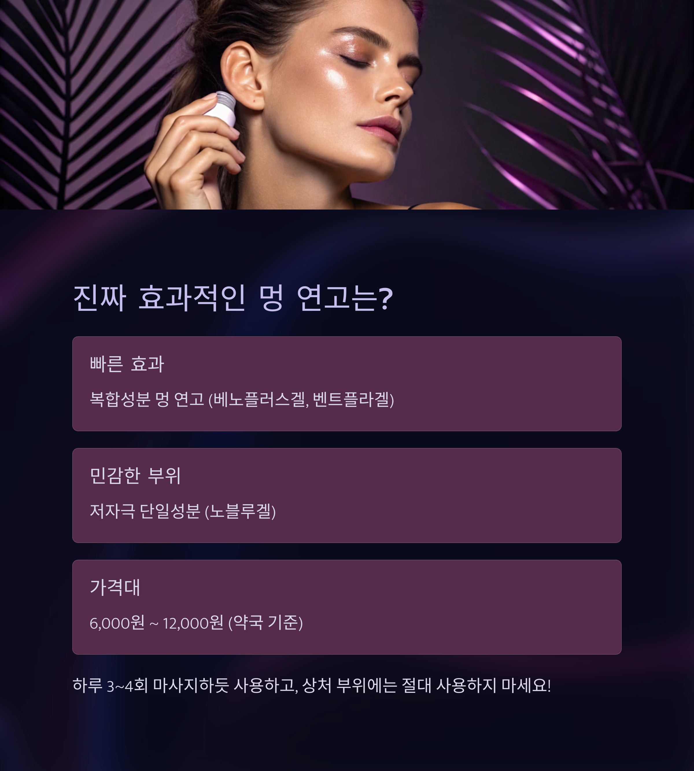 약국에서 판매되는 의약품 멍 연고와는 효과 면에서 비교 불가입니다.