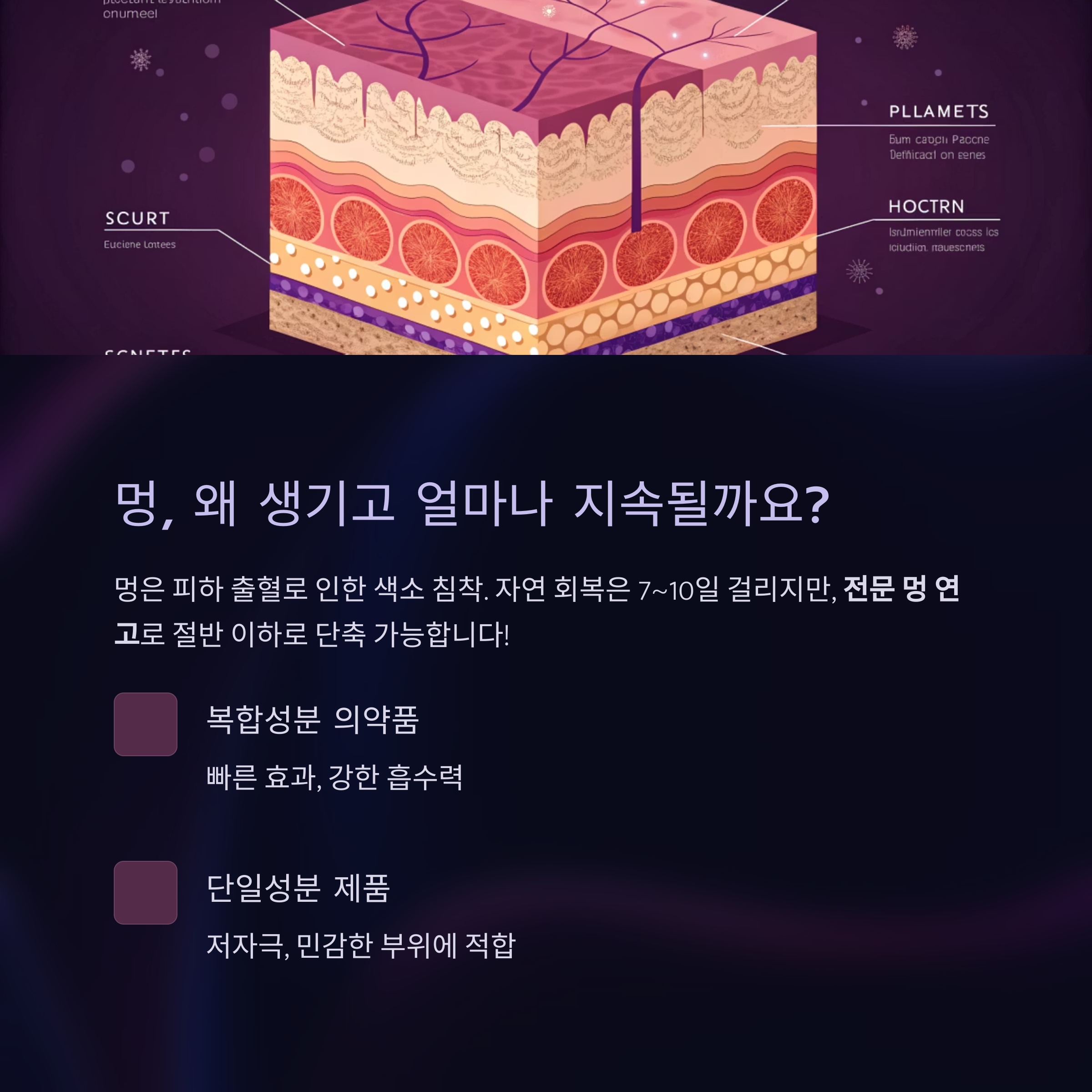 | 복합성분 연고 | 3일에서 5일 | 빠른 멍 제거, 강한 흡수 |