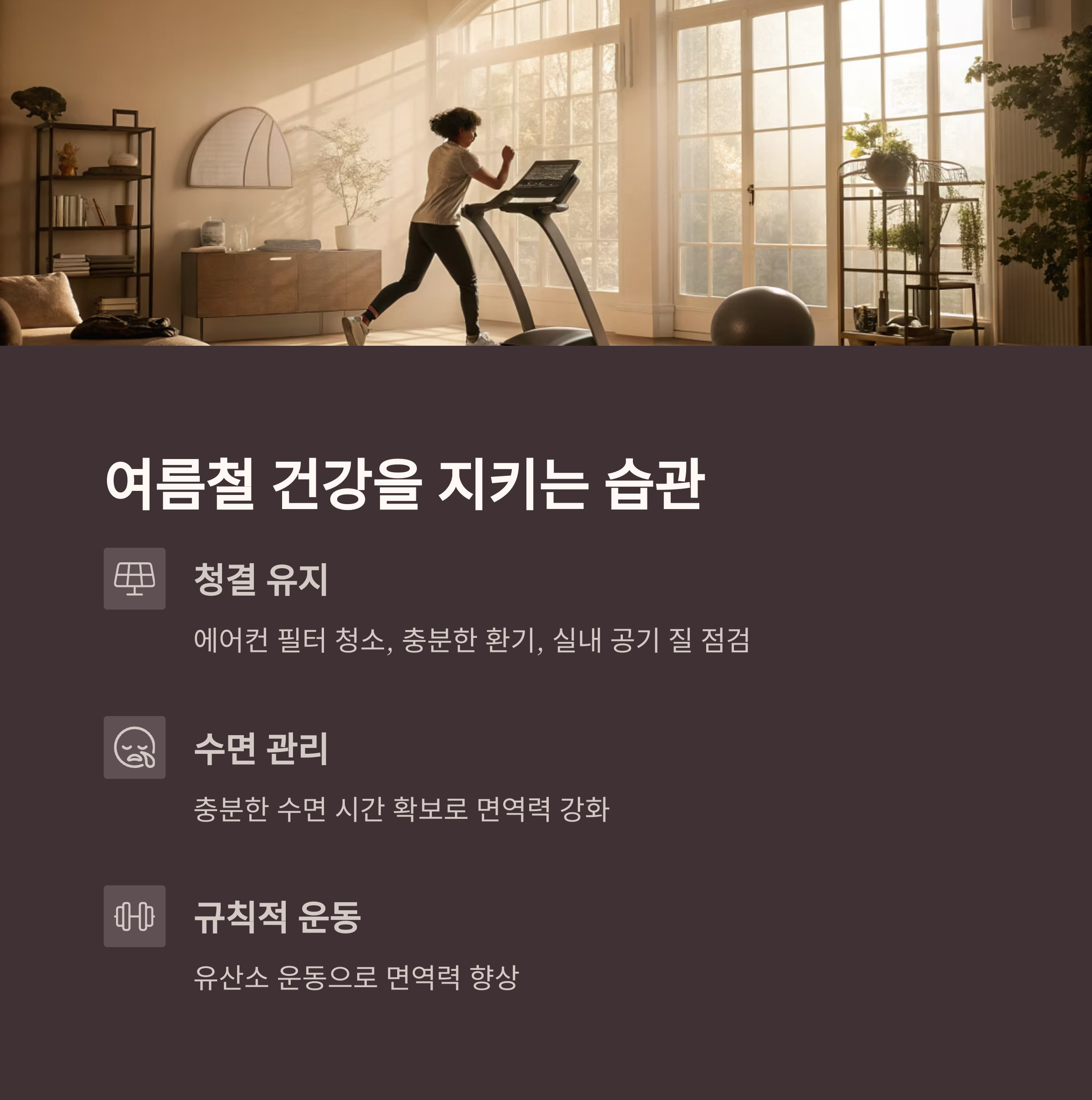 에어컨을 켜기 전 필터 청소, 충분한 환기, 실내 공기 질 점검은 가장 기본적이지만 강력한 예방책입니다.