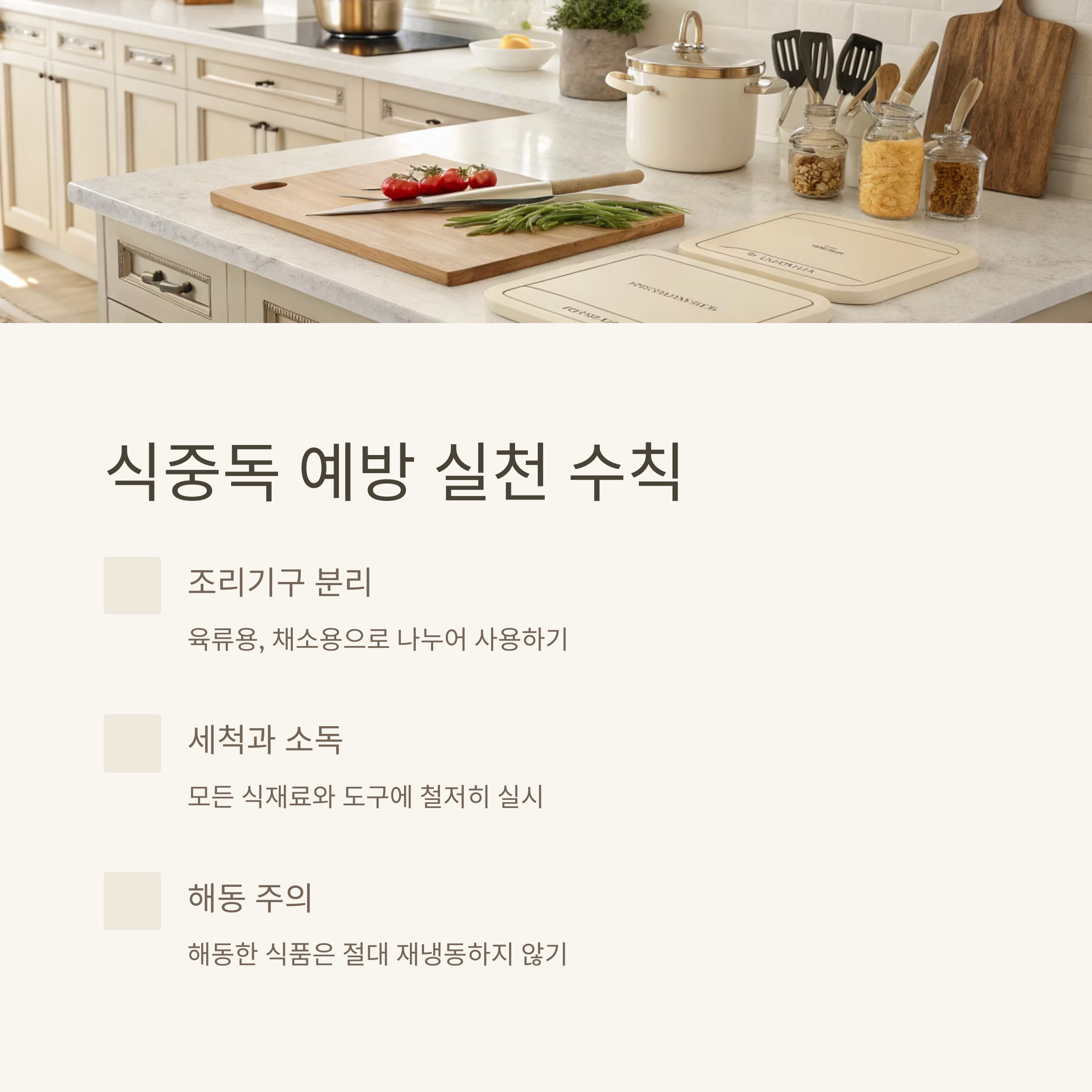 | 손 씻기 | 조리 전, 식사 전, 외출 후 30초 이상 비누로 씻기 |