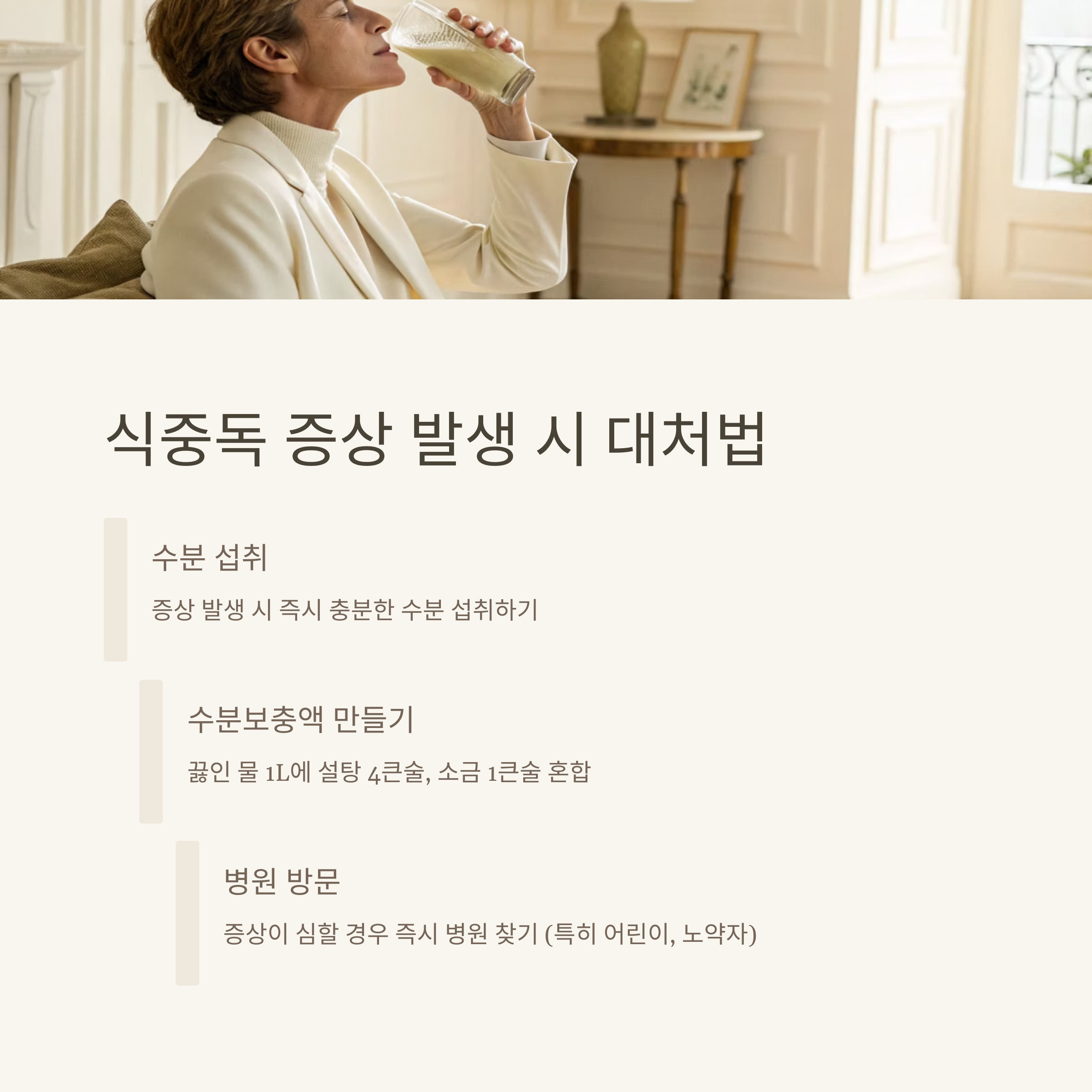 식중독 증상이 나타나면 즉시 수분을 충분히 섭취해야 합니다.