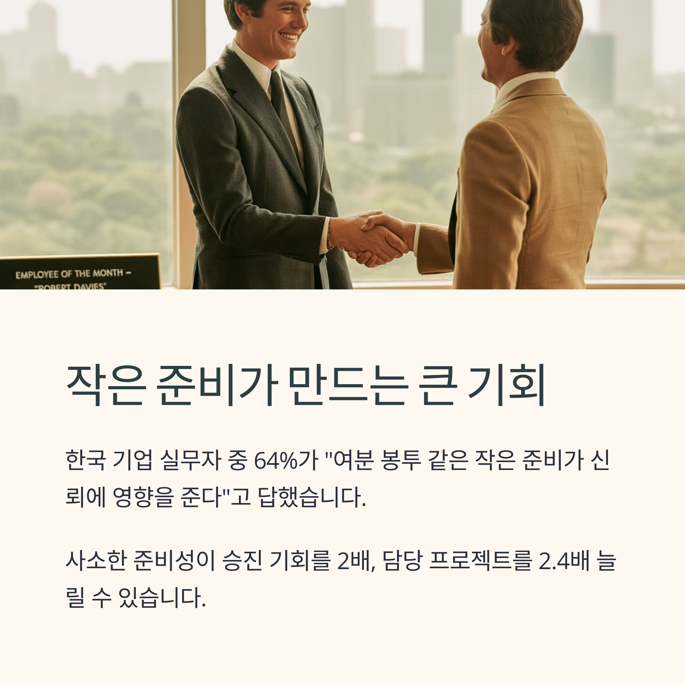 사소한 준비성이 승진 기회를 2배, 담당 프로젝트를 2.4배 늘리는