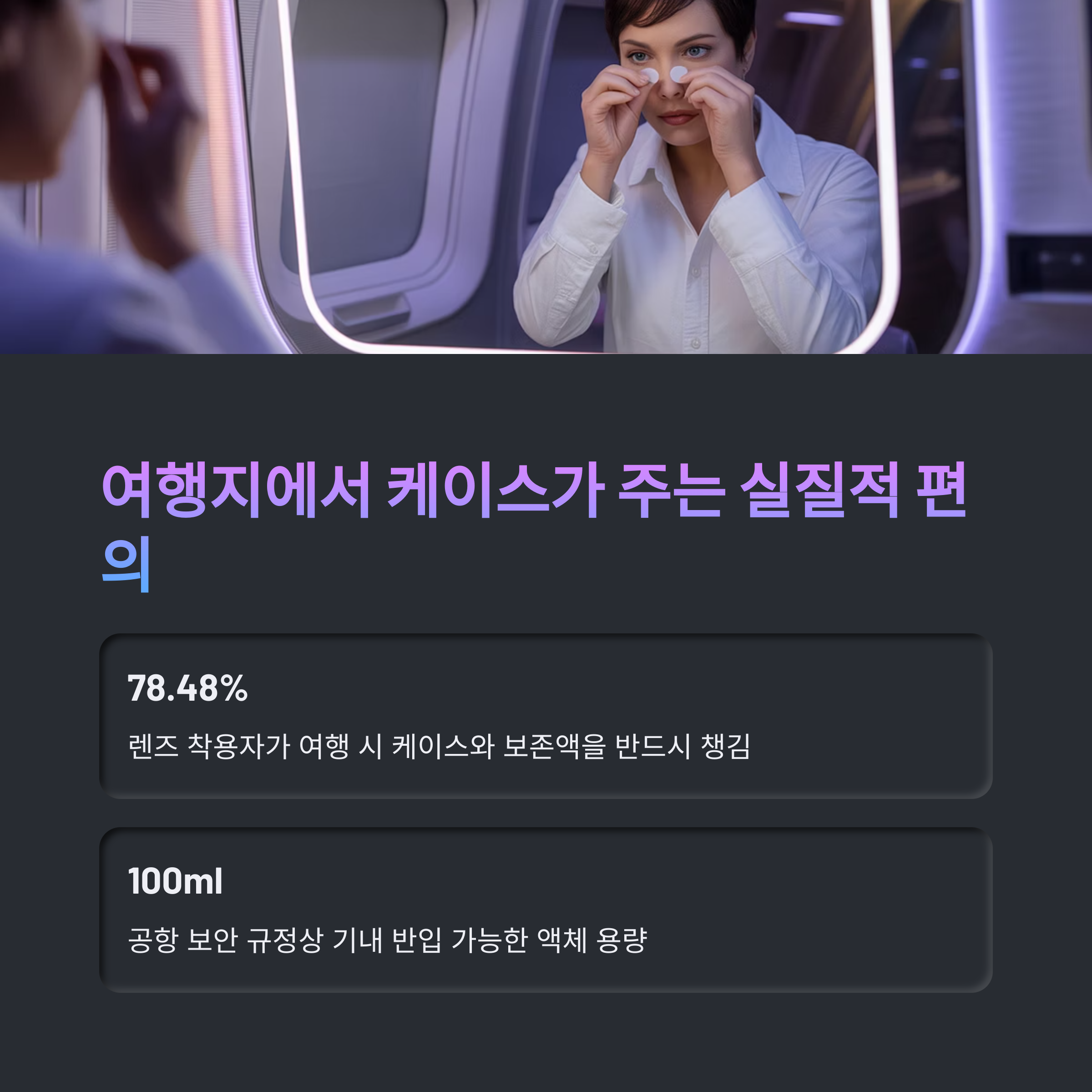 렌즈 사용자 3명 중 2명이 여행지에서 렌즈 관리로 어려움을 겪은 만큼,