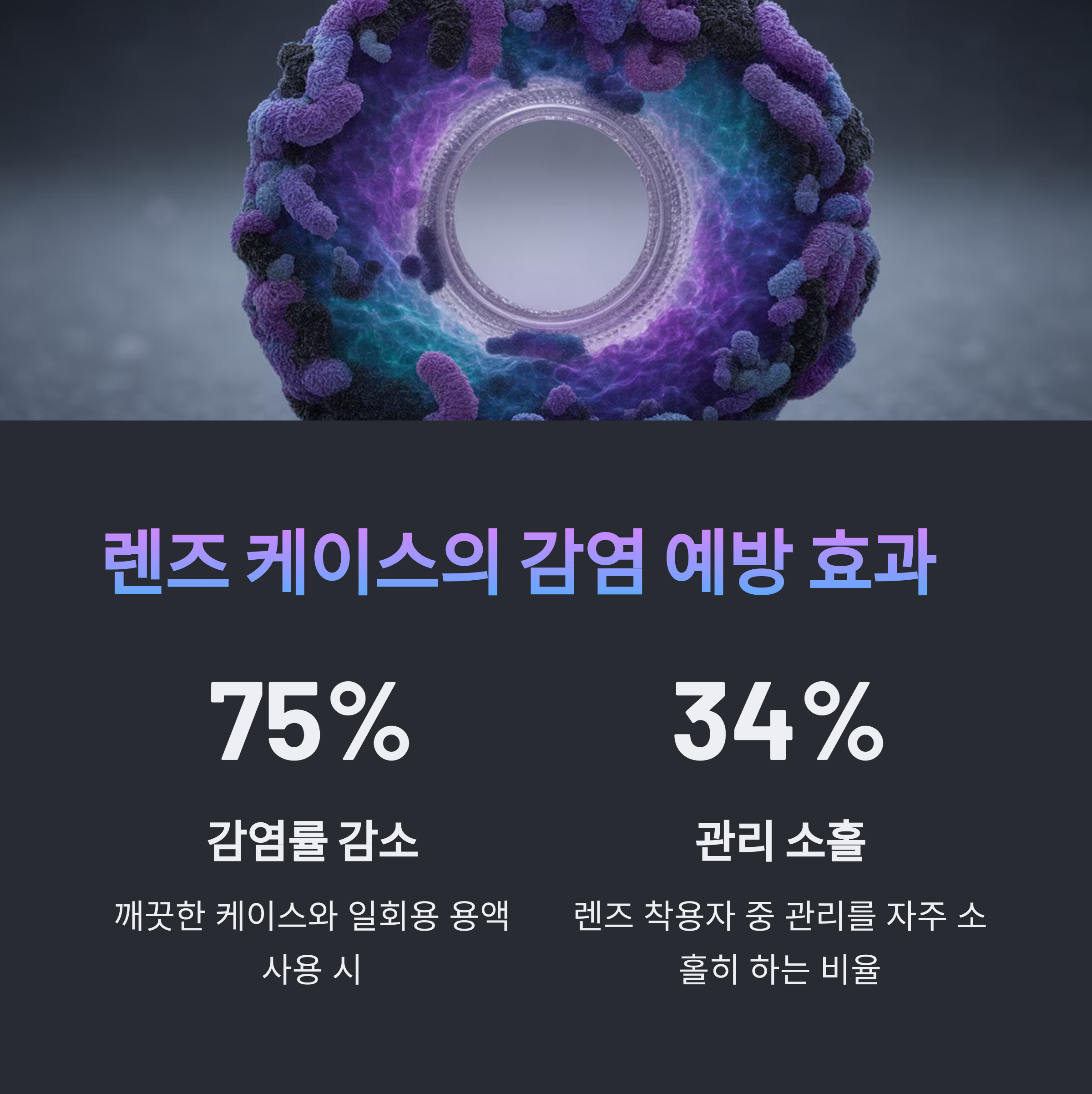 렌즈 케이스의 역할은 단순한 보관이 아니라, 외부 세균과 이물질로부터 렌즈를 보호하는 위생 도구입니다.
